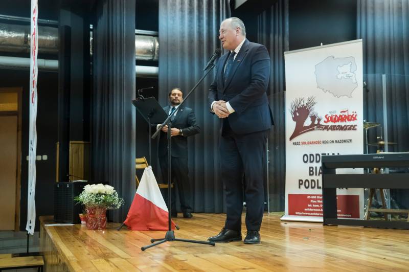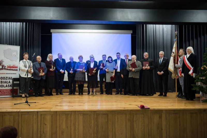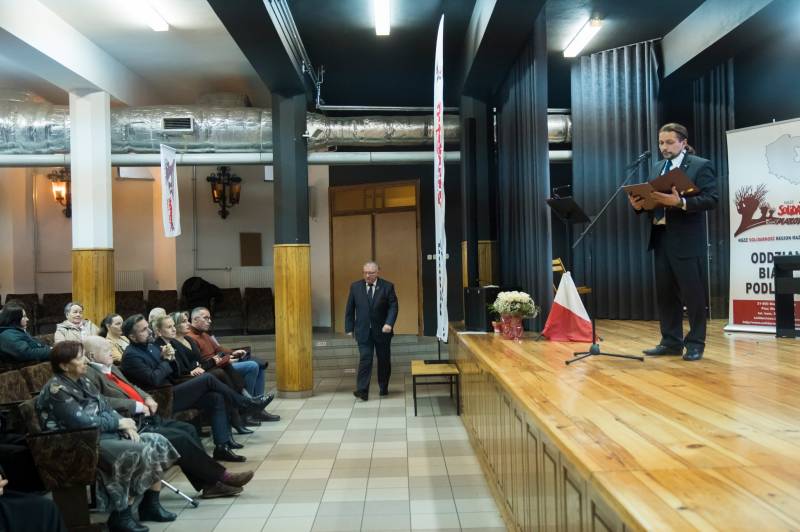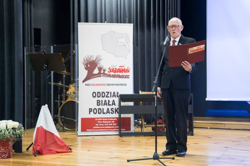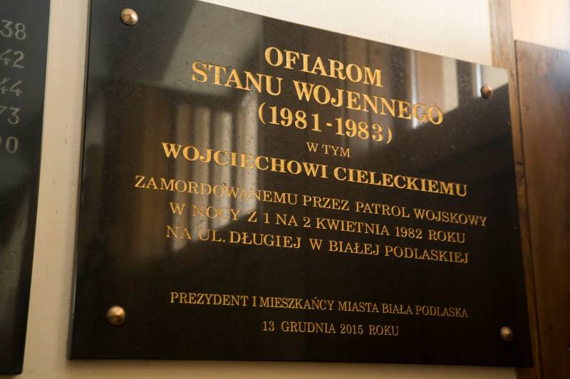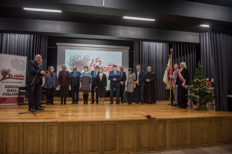 W rocznicę wprowadzenia stanu wojennego tradycyjnie złożono kwiaty przy pomniku Solidarności oraz przy pamiątkowej tablicy w parafii Wniebowzięcia NMP, poświęconej Wojciechowi Cieleckiemu – bialczaninowi zamordowanemu przez patrol wojskowy w nocy z 1 na 2 kwietnia 1982 roku. Na ręce Marka Pniewskiego, przewodniczącego bialskiego oddziału NSZZ „Solidarność”, przekazano podziękowania należne strażnikom pamięci o historii i wspólnocie wartości tego fenomenu – największego społecznego ruchu, który wywalczył w Polsce demokrację. Podziękowania skierowano również do mieszkańców Miasta Biała Podlaska. Wyrazy wdzięczności przekazano także wszystkim, którzy uczestniczyli w obchodach jubileuszu 45-lecia narodzin NSZZ „Solidarność”, w szczególności gościom z Regionu Mazowsze: zastępcy przewodniczącego Ireneuszowi Smółce, skarbnikowi Maciejowi Płońskiemu, przewodniczącemu oddziału w Łukowie Januszowi Turskiemu, przewodniczącemu oddziału w Mińsku Mazowieckim Grzegorzowi Padzikowi oraz ks. Michałowi Kotowskiemu, duszpasterzowi Ludzi Pracy Archidiecezji Warszawskiej. Podczas uroczystości prezydent miasta Michał Litwiniuk odebrał również statuetkę z okazji 45-lecia NSZZ „Solidarność”. Podziękowania skierowano do wszystkich kapłanów obecnych podczas obchodów, a także do aktorów Teatru Atelier z IV LO im. Stanisława Staszica w Białej Podlaskiej, którzy pod opieką wicedyrektor Beaty Samojluk oraz nauczycieli Iwony Świderskiej i Jarosława Darczuka, przygotowali spektakl „Linia życia” i zaprezentowali podczas uroczystości.