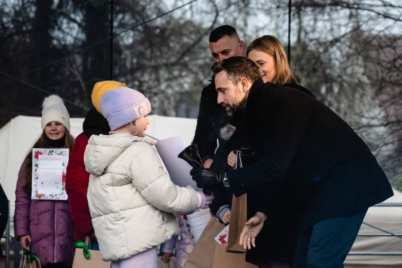 Szczególne podziękowania trafiły do harcerzy z Hufca ZHP Biała Podlaska „Rubież”, którzy przynieśli Betlejemskie Światło Pokoju. Podczas jarmarku wręczono również nagrody autorom prac w konkursie plastycznym „Najpiękniejsze życzenia z Białej Podlaskiej”.