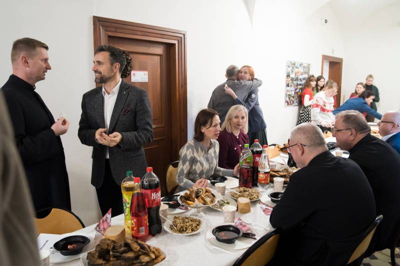 Uroczystość dopełniło symboliczne podzielenie się opłatkiem oraz wspólny wigilijny posiłek, który zgromadził przy jednym stole zaproszonych gości i wolontariuszy w atmosferze wzajemnej życzliwości.