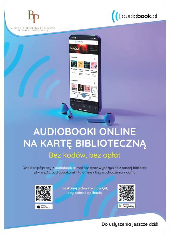 Miejska Biblioteka Publiczna w Białej Podlaskiej rozszerzyła swoją ofertę o dostęp do platformy Audiobook.pl. Dzięki tej współpracy czytelnicy posiadający aktywną kartę biblioteczną mogą korzystać z bogatych zasobów książek mówionych całkowicie bezpłatnie.