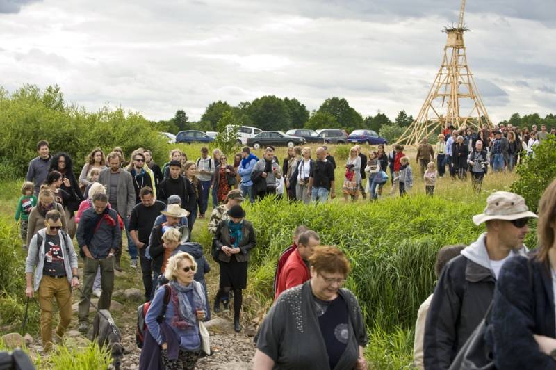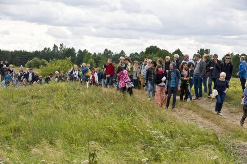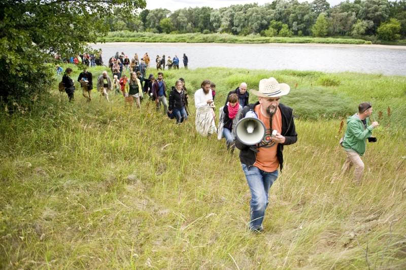 Spacer obejmował ponad 20 punktów, czyli tyle samo artystycznych instalacji, rzeźb oraz performanceów, przygotowanych na tegoroczny Landart. Zaczynało się od wysokiej wieży, stworzonej przez włoskiego rzeźbiarza Duilio Forte. Jego instalację trudno było pominąć, bo rzucała się w oczy już z daleka. Podobnie zresztą jak obiekt przygotowany przez Katarzynę Krzykawską. Jej „Koń a sprawa polska” miał być grą z mitem Polskości na kresach. Gościnny okazał się Marcin Sudziński, który oprócz wyjątkowej rzeźby, zaprosił przybyłych gości na poczęstunek z okazji swoich urodzin. Częstował przy tym miodem i wodą ze źródełka, wypływającego z rzeki.