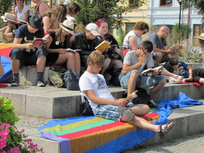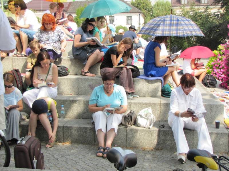 Na happening można było przyjść ze swoją ulubioną książką, lub skorzystać z tych, które udostępniła biblioteka na Placu.