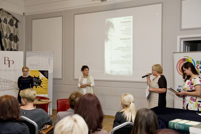 Wizyta laureatki Nike spotkało się z ogromnym zainteresowaniem bialczan. Sala Bialskiego Centrum Kultury wypełniła się po brzegi. Autorka odpowiadała na pytania prowadzącej i publiczności, poświęcając dużo czasu na zaprezentowanie swojej najnowszej książki. „Księgi Jakubowe” to monumentalna 900-stronicowa pozycja, odwołująca się do historii z XVIII w., pieczołowicie prezentując tło epoki, język i najdrobniejsze szczegóły. Jak przyznała, poprawki wprowadzano w ostatniej chwili, gdy okazało się że charakterystyczną potrawą w regionie Polski gdzie dzieje się akcja powieści nie były ziemniaki, ale ryż. Zamiana potrawy w całej książce nie należała do najłatwiejszych zadań.