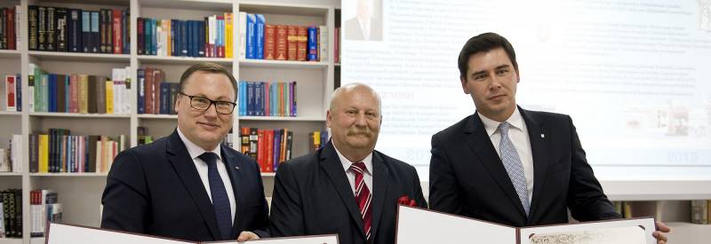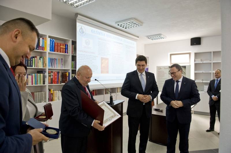Projekt jest efektem współpracy prezydenta Dariusza Stefaniuka i senatora Grzegorza Biereckiego, który zabiegał od dawna o powstanie biblioteki. Obaj otrzymali z rąk dyrektora pamiątkowe dyplomy wypisane po łacinie oraz medale.