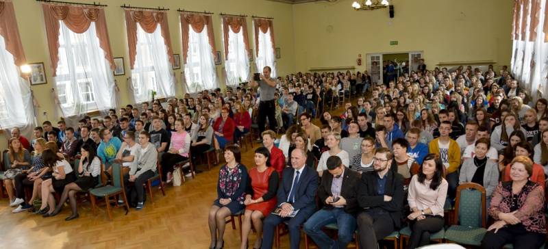 Zespół Pieśni i Tańca Pribugie z Gimnazjum nr 3 w Brześciu odwiedził bialski ZSZ nr 1. Grupa kilkudziesięciu artystów zagrała, zaśpiewała i zatańczyła w klimacie wielokulturowym. Widowiskowy program artystyczny podziwiał m.in. zastępca prezydenta Michał Litwiniuk.