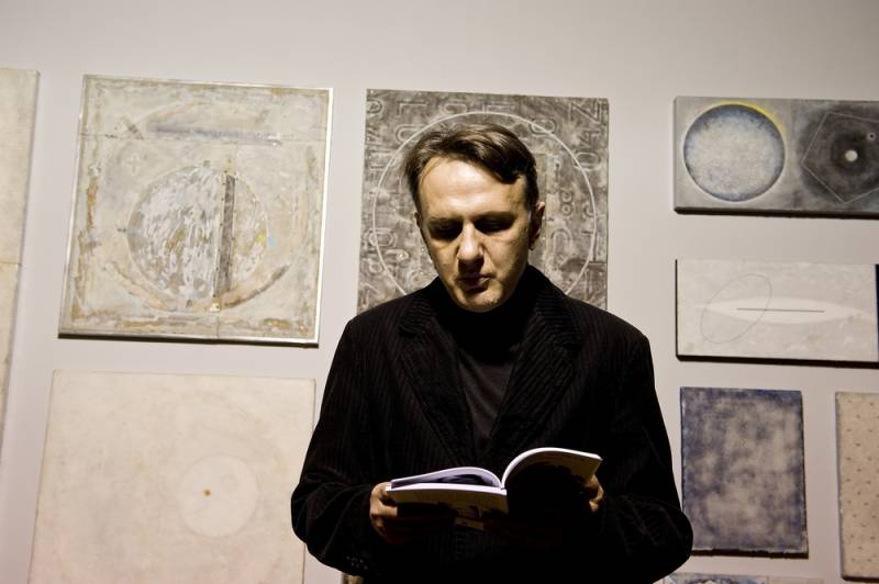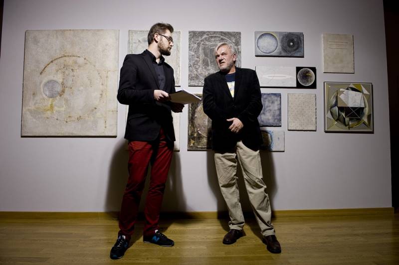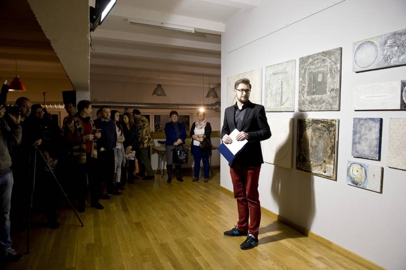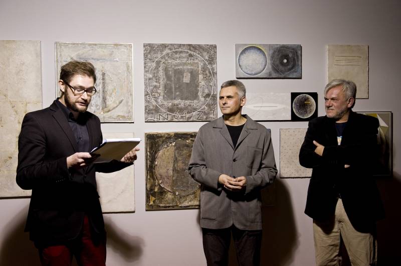 Łukasz Głowacki z Lublina oprócz malarstwa zajmuje się działaniami performance, scenografią, tworzy obiekty i instalacje. Jego sztuka ma charakter interdyscyplinarny, gdzie przenikają się różne środki wyrazu. Najnowsze dzieła odnoszą się do ludzkiej egzystencji i są minimalistycznymi, prostymi obiektami, zawierającymi metaforyczny kod znaczeń. Na wystawie prezentuje dość tradycyjne malarstwo, z cechami kosmicznymi i rzucającą się w oczy geometrycznością.