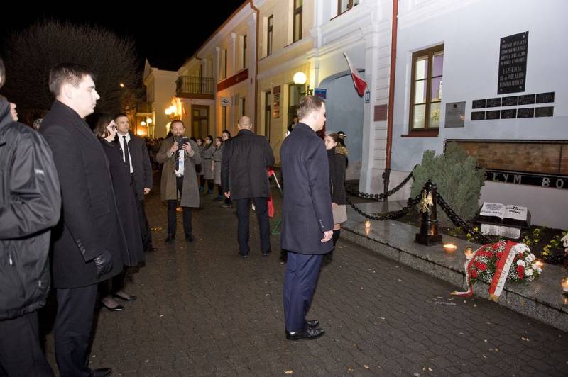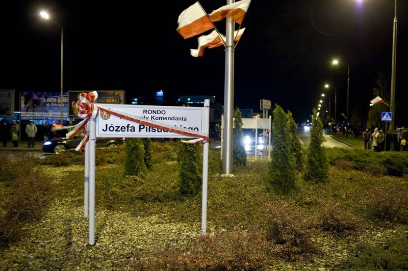 Zanim prezydent Andrzej Duda pojawił na Placu Wolności wziął udział w odsłonięciu nazwy ronda I Brygady Komendata Marszałka Piłsudskiego, gdzie powitały go tłumy bialczan. Później odwoływał się do tej uroczystości w swoim przemówieniu na Placu Wolności.