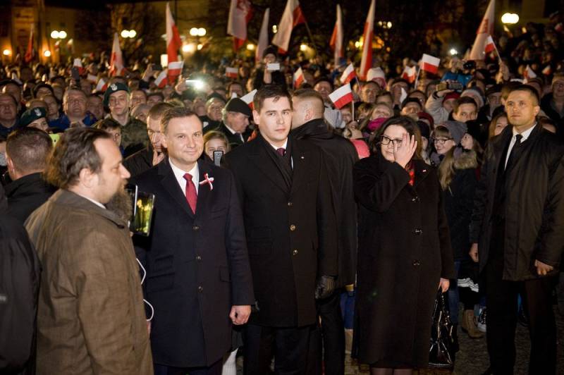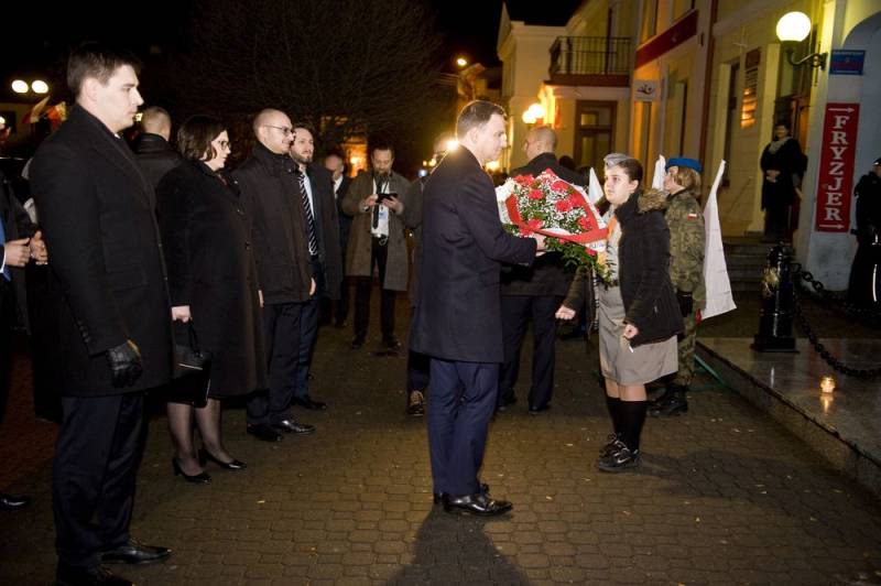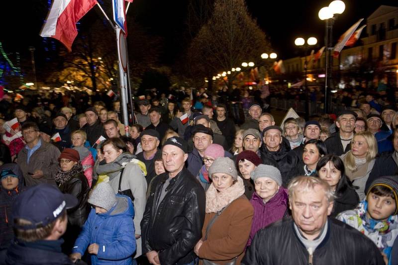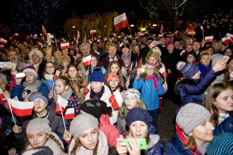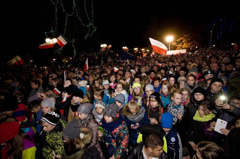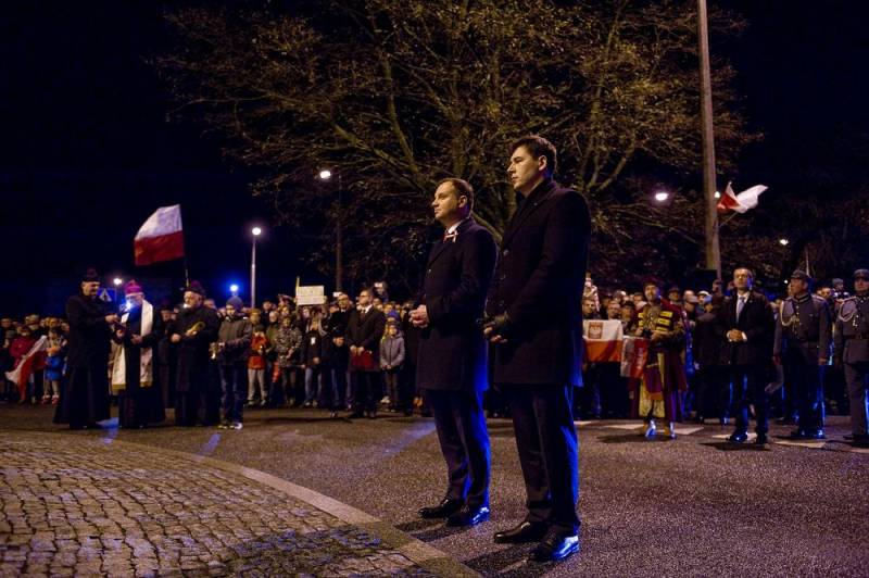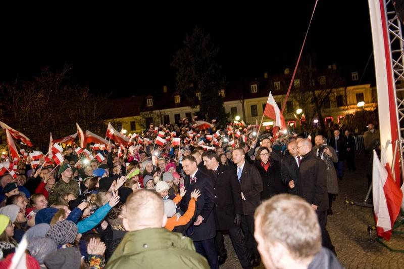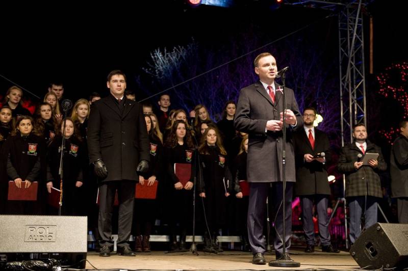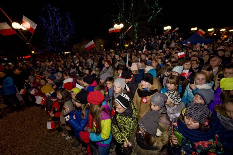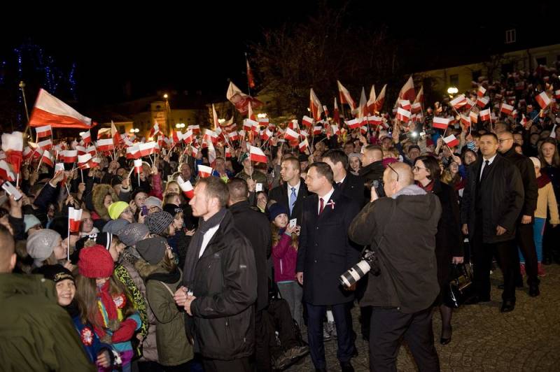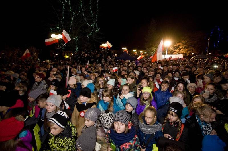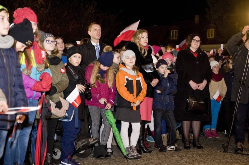 Prezydent RP dziękował za piękną uroczystość i wspaniałą postawę, a także za biało czerwone flagi, które licznie powiewały nad głowami bialczan. Prezydent śpiewał razem z chórem Camerata z IV LO najbardziej znane pieśni narodowe. Dodatkowym akcentem było również przekazanie przez Dariusza Stefaniuka figury św. Michała Archanioła.