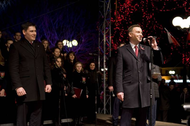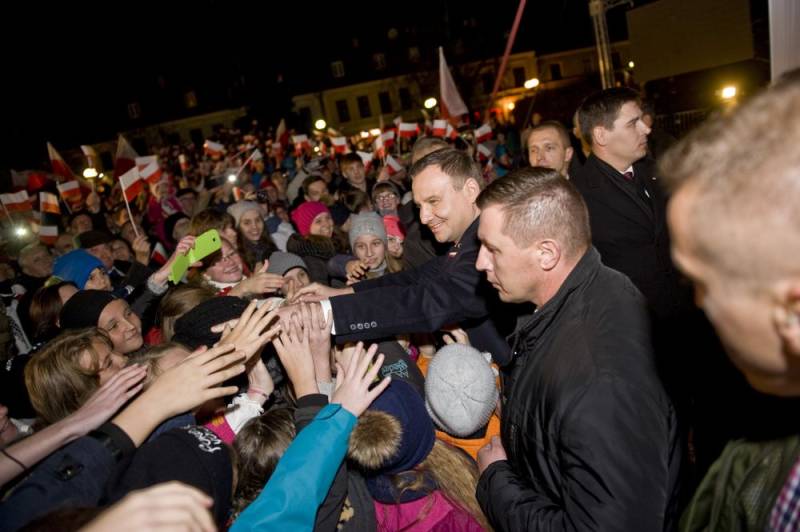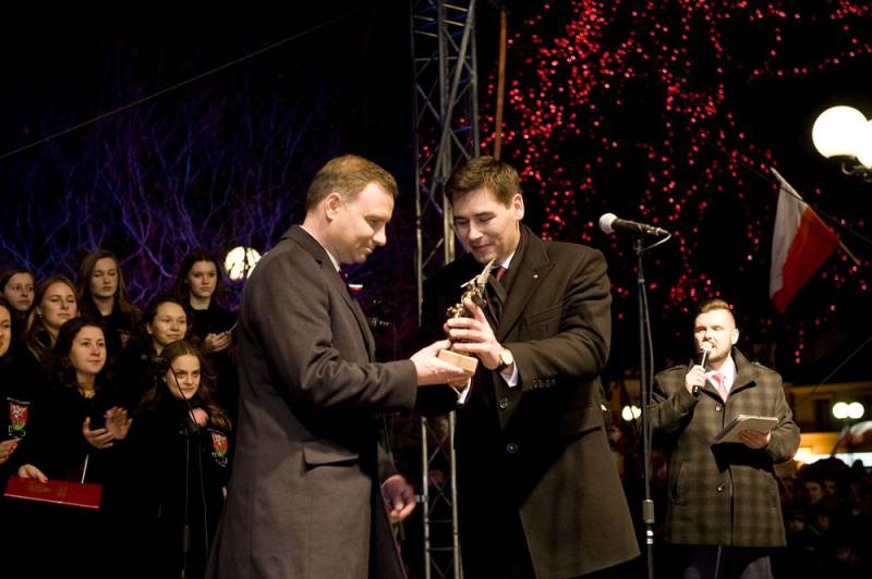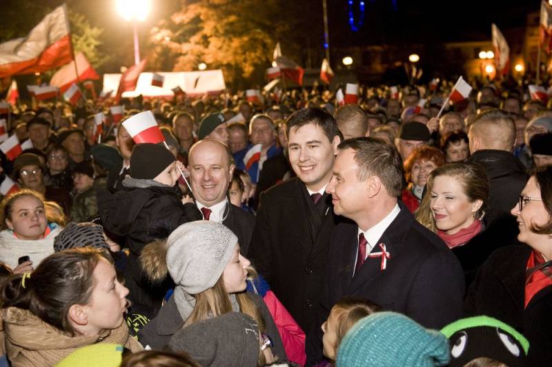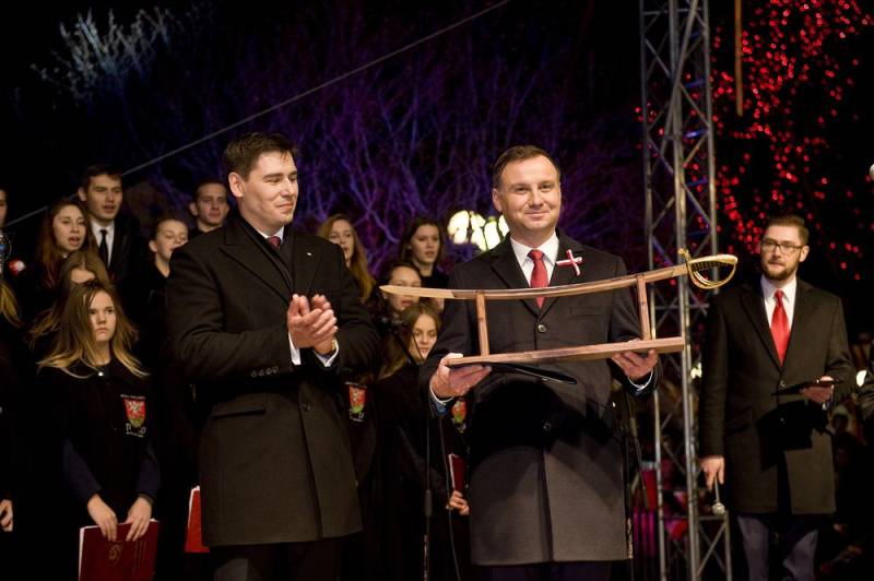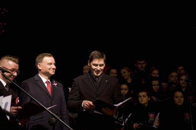 – To właśnie on walczył ze złem i je pokonał. Mam nadzieję że teraz będzie także strzegł pana w trudnej, publicznej służbie – mówił bialski włodarz. Prezent dla Andrzeja Dudy miała też młodzież gimnazjum nr 4, noszącego imię Marszałka Józefa Piłsudskiego. Szablę ze specjalną dedykacją wręczył prezydentowi nauczyciel Bartosz Prokop, który wcześniej miał także okazję zaśpiewać razem z kilkutysięczną publicznością.