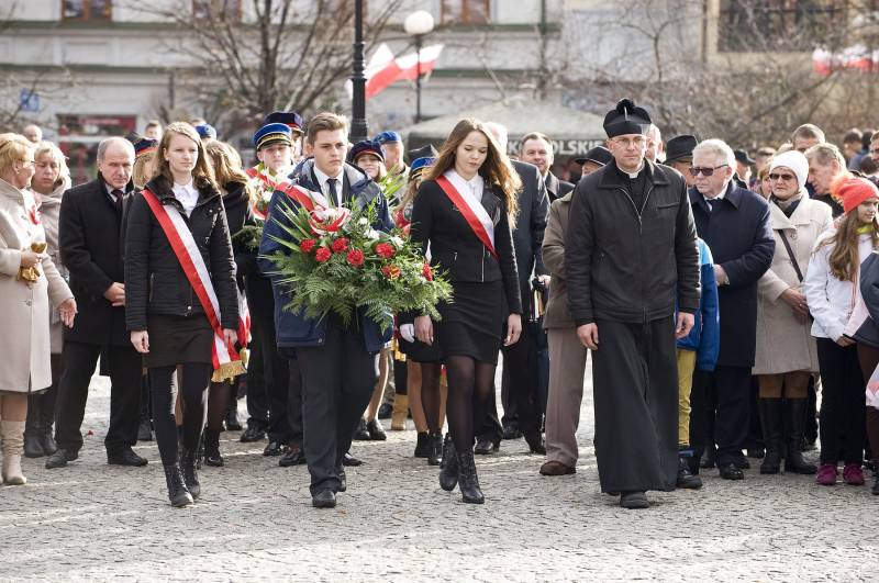 Bialskie uroczystości upamiętniające 97. rocznicę odzyskania niepodległości rozpoczęły się w środę o godz. 10.00 mszą w parafii Narodzenia NMP. Później prezydent Dariusz Stefaniuk, parlamentarzyści i przedstawiciele miejskich instytucji, złożyli kwiaty pod Orłem Niepodległości na Placu Wolności.
