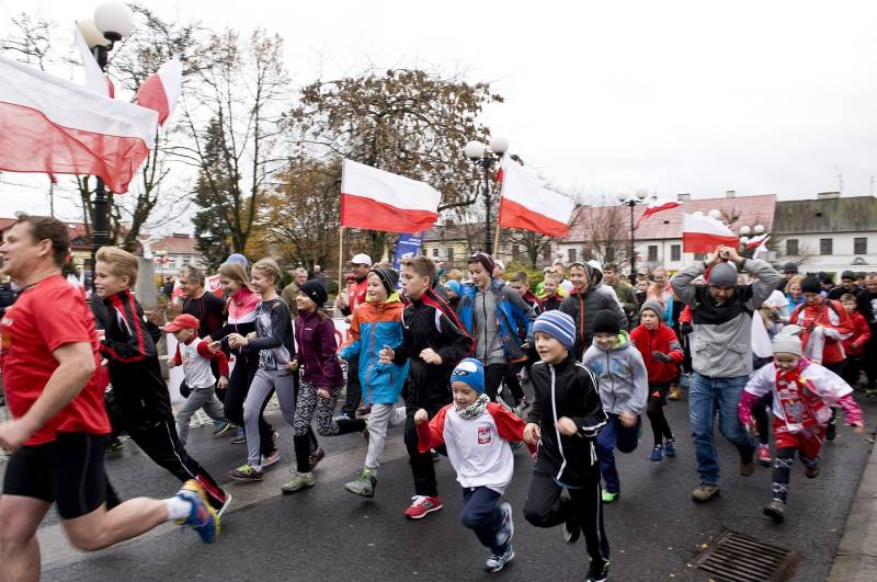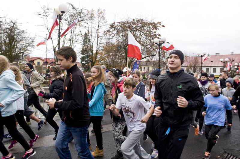 Mimo niekorzystnych warunków atmosferycznych w środę odbył się także symboliczny bieg niepodległości, prowadzący uliczkami w centrum miasta.
