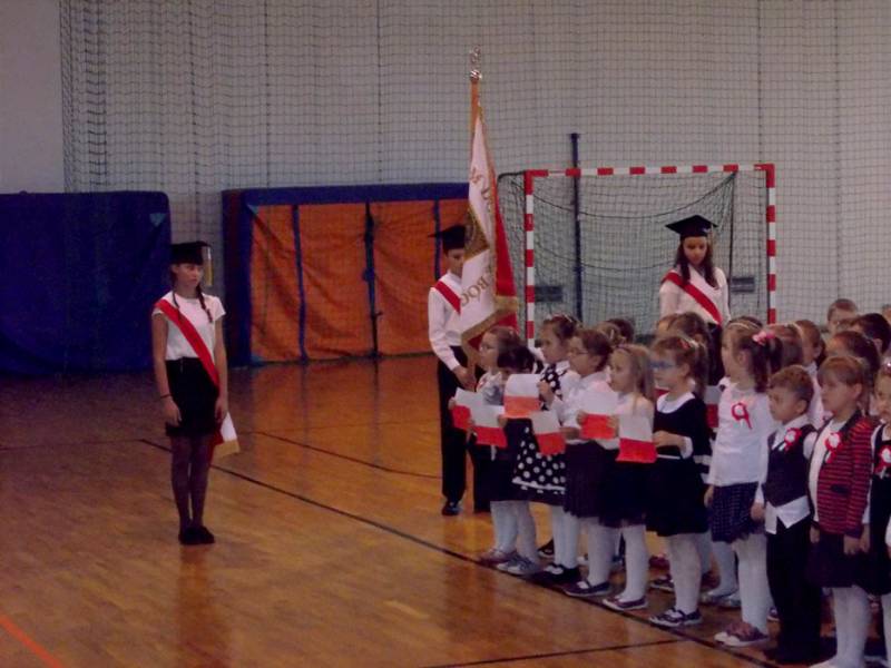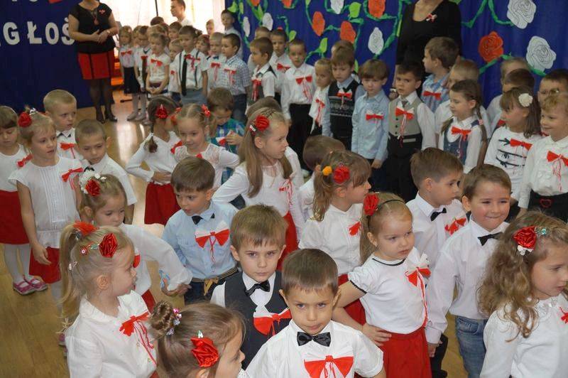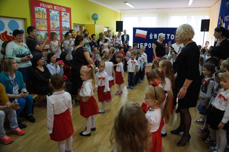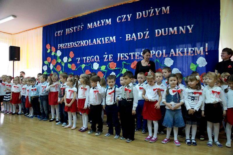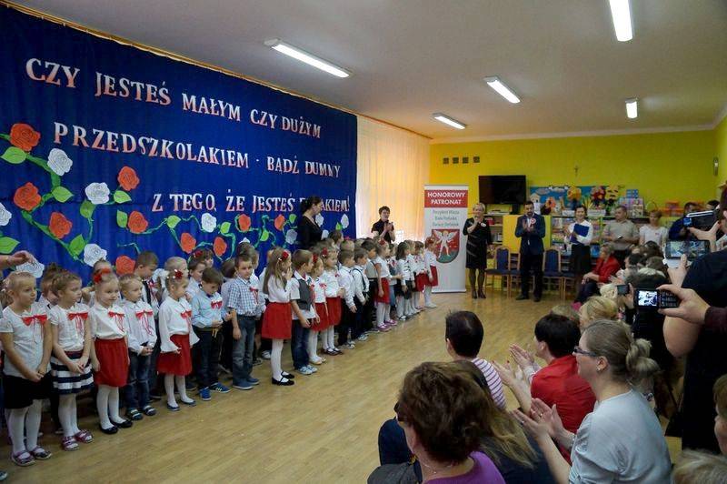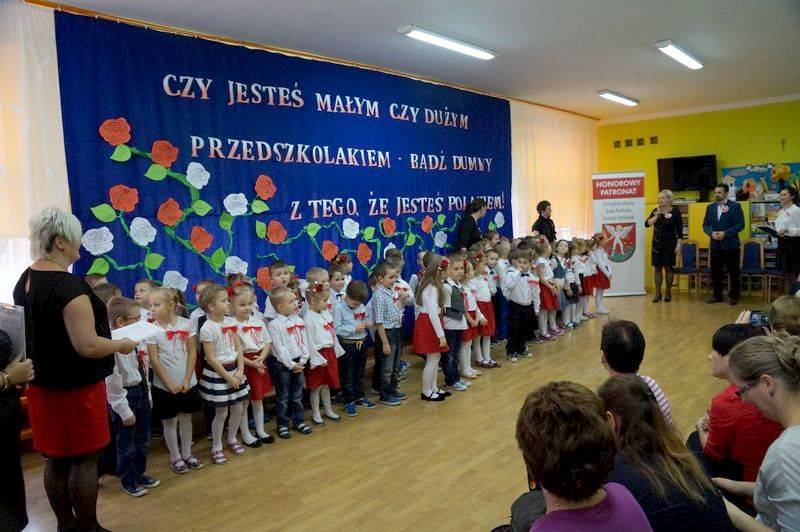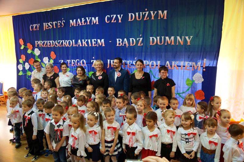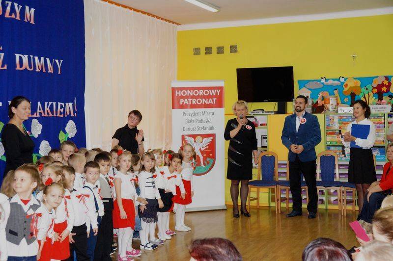 Przedszkolaki z pomocą nauczycielki Jolanty Rusakowicz przygotowały uroczystość, którą otworzyło wprowadzenie pocztu z flagą narodową. Najmłodsi bialczanie odśpiewali też bardzo zdecydowanie Mazurka Dąbrowskiego. Następnie dzieci przywitały wszystkich zaproszonych gości, wśród których znaleźli się rodzice oraz zastępca prezydenta miasta Michał Litwiniuk.