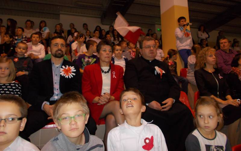 Ciekawie było także w trójce, gdzie odbył się uroczysty apel ku czci Narodowego Święta Niepodległości. Spektakl przygotowali uczniowie klasy sportowej przy pomocy Mariusza Michalczuka i Wojciecha Tokarskiego. Oprawę muzyczną stworzył uczeń piątej klasy Grzegorz Lasiecki, wraz z tatą Waldemarem i chórem szkolnym, działającym pod kierunkiem Zofii Lasieckiej. W uroczystości obok prezydenta Michała Litwiniuka wziął ks. Andrzej Biernat, proboszcz parafii Wniebowzięcia NMP.