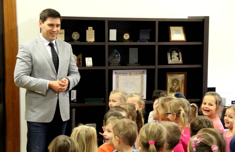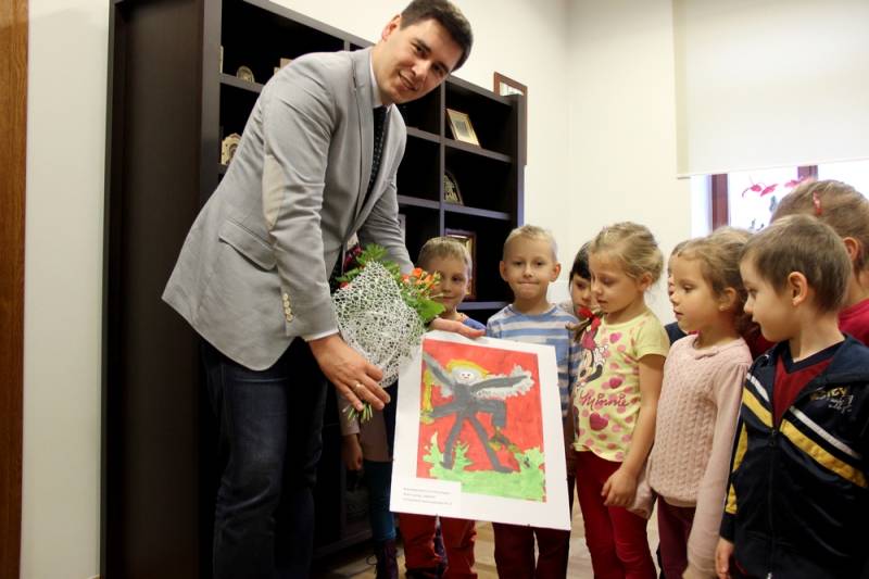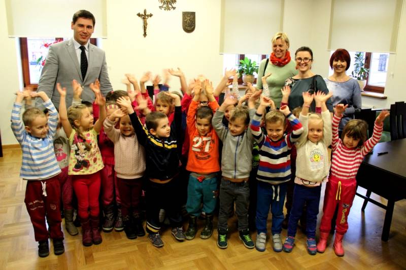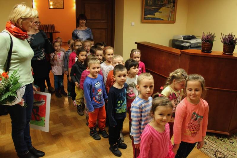 Najmłodsi goście prezydenta już tradycyjnie mieli dużo pytań i z wielką ciekawością oglądali gabinet oraz urzędowe pomieszczenia. Grupa „Jagódek” z przedszkola nr 17 miała też kwiaty i specjalny podarunek – wizerunek św. Michała na smoku, namalowany przez dzieci.