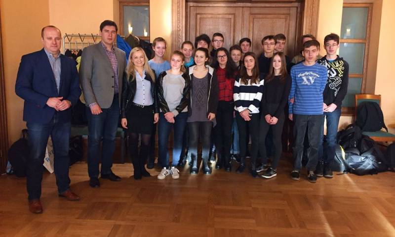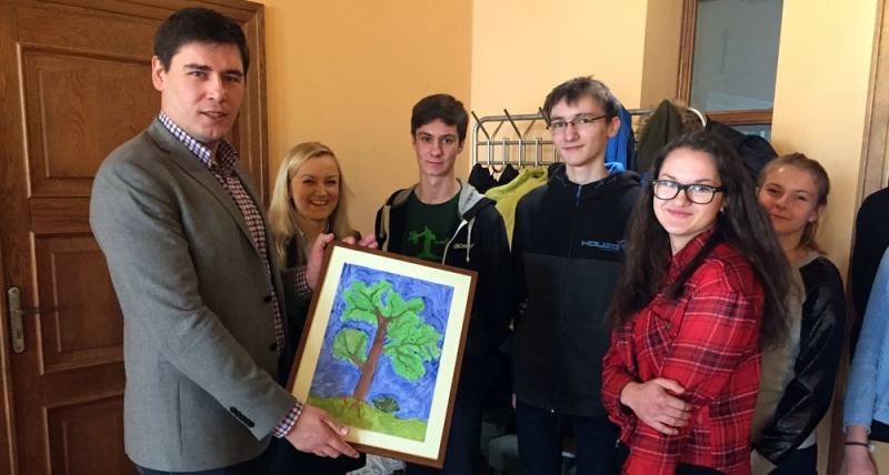 W podziękowaniu za wizytę włodarz otrzymał obraz namalowany przez jednego z uczniów. W zamian ofiarował młodzieży bialskie gadżety. Wychowawcą nastolatków jest Izabela Kościuszko.