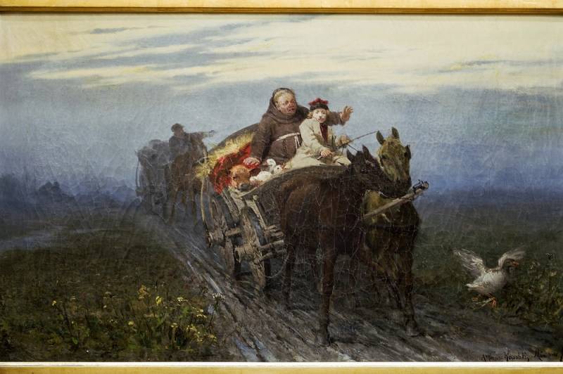 Alfred Wierusz-Kowalski w Powrocie kwestarza, jednym ze swoich pierwszych obrazów, dał wyraz swoim zainteresowaniom i temperamentowi artysty rodzajowego. Jego prace najczęściej ukazują ulotne, wnikliwie zaobserwowane i wiernie odtworzone na płótnie okruchy rzeczywistości polskiej prowincji – małych miasteczek i błotnistych traktów wiodących przez pustkowia.