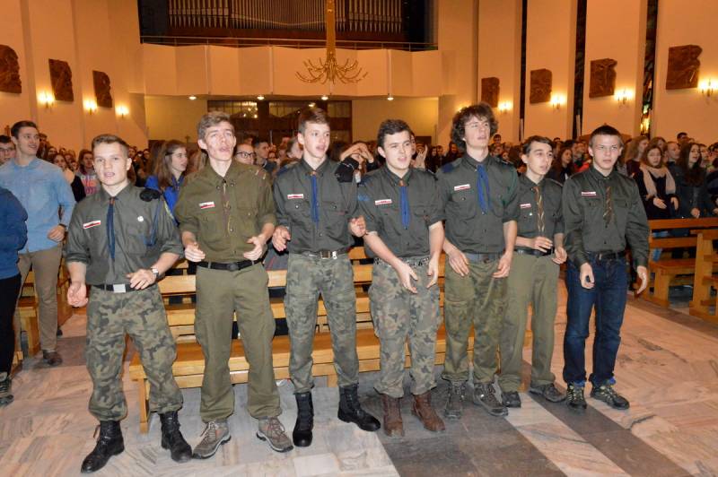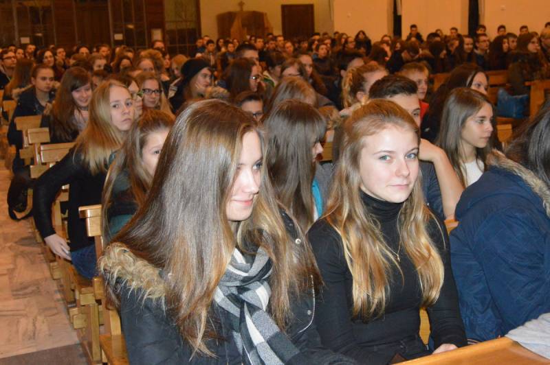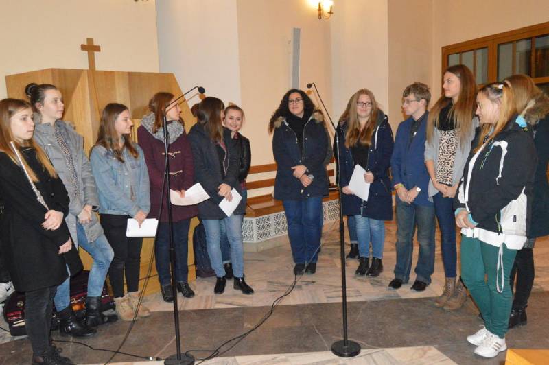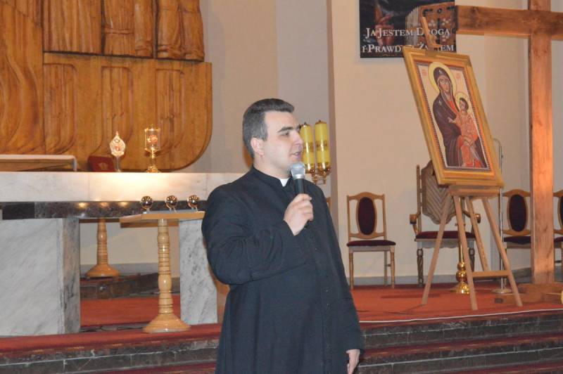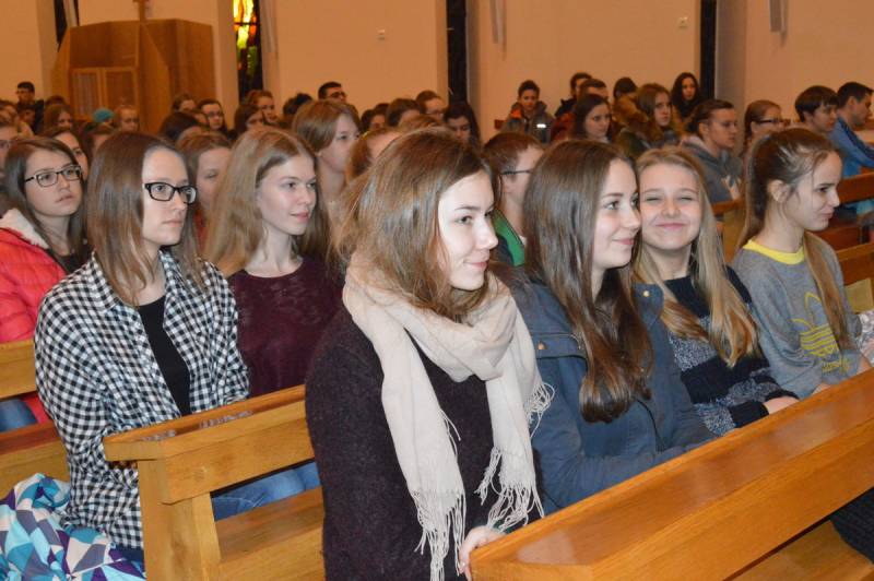 Wszystkich zebranych witał gospodarz parafii, proboszcz ks. Andrzej Biernat. Po krótkim wstępie wprowadzono relikwie Jana Pawła II oraz siostry Faustyny, ikonę Matki Bożej oraz krzyż. Całość pod przewodnictwem harcerzy ze światłem w ręku. Liderzy ŚDM z rejonu Białej Podlaskiej przedstawili najświeższe newsy i poinformowali, że już tylko do końca lutego można zapisać się na wyjazd do Krakowa jak i do uczestnictwa w wolontariacie. Specjalnym gościem spotkania był ks. Jakub Kozak, który wygłosił konferencję na temat spowiedzi.