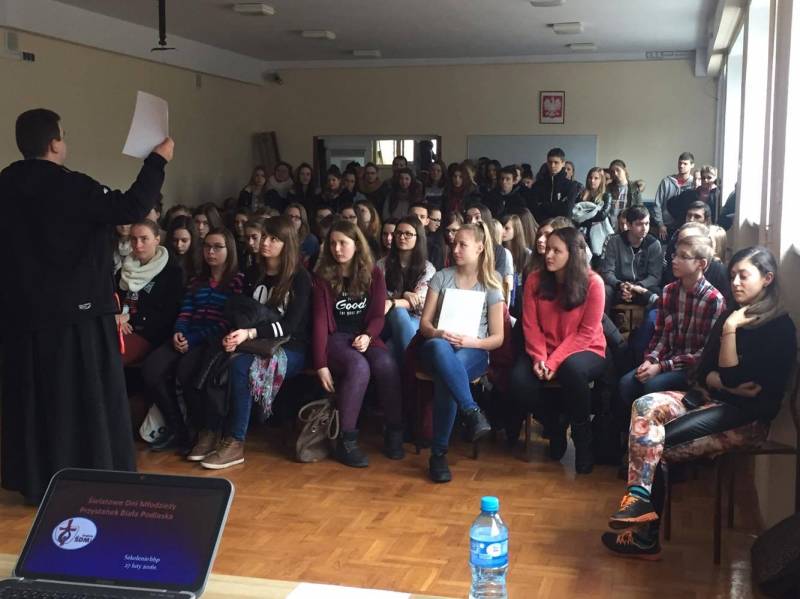 27 lutego w Katolickim Gimnazjum w Białej Podlaskiej zebrali się wolontariusze Światowych Dni Młodzieży rejonu Biała Podlaska. Wszystko za sprawą obowiązkowego szkolenia, przygotowującego do ŚDM z elementami BHP. Każdy przez godzinę miał okazję poznania najważniejszych zasad bezpieczeństwa, a następnie spotkał się z liderami ŚDM rejonu Biała w celu omówienia działań na przyszłe tygodnie.
