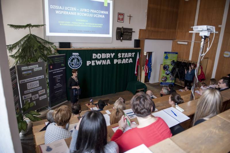W konferencji wzięła udział Joanna Szczepańska, pedagog i socjoterapeuta z poradni psychologiczno-pedagogicznej oraz Renata Kowal, doradca zawodowy z Centrum Informacji i Planowania Kariery Zawodowej Wojewódzkiego Urzędu Pracy w Lublinie. O szansach i oczekiwaniach mówili także pracodawcy i pracownicy bialskiego Cechu.