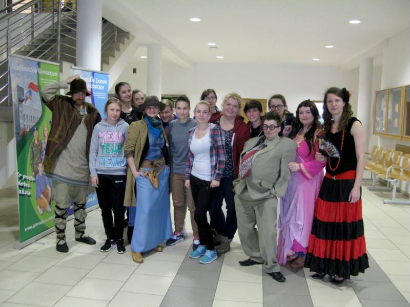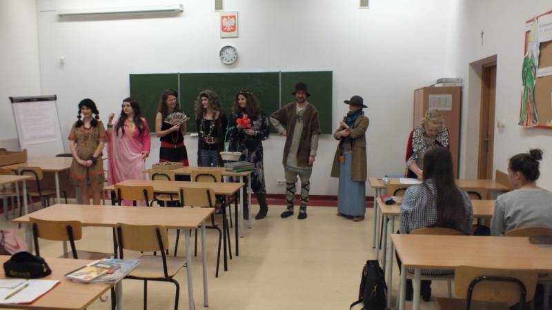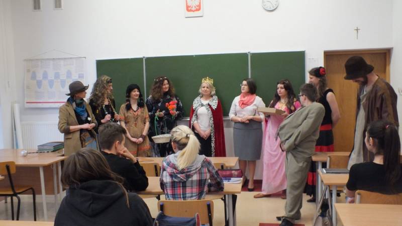 Nauczyciele na czele z dyrektor Elżbietą Zarembą odwiedzili poszczególne klasy przebrani za różne postacie. Była miedzy innymi królowa, Indianka, kowbojka czy hiszpanka. Uczniowie patrzyli z niedowierzaniem i nie byli w stanie powstrzymać salw śmiechu. Ale o to chyba właśnie chodziło.