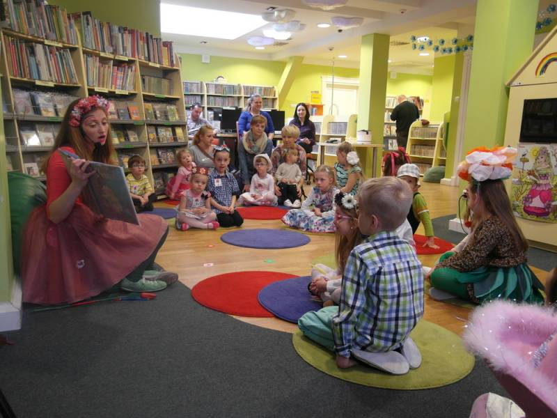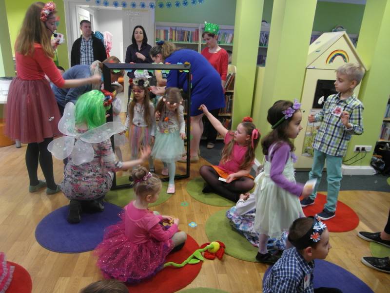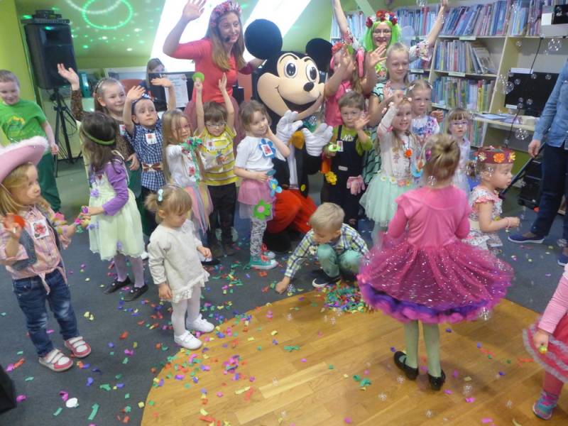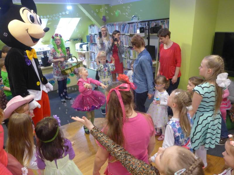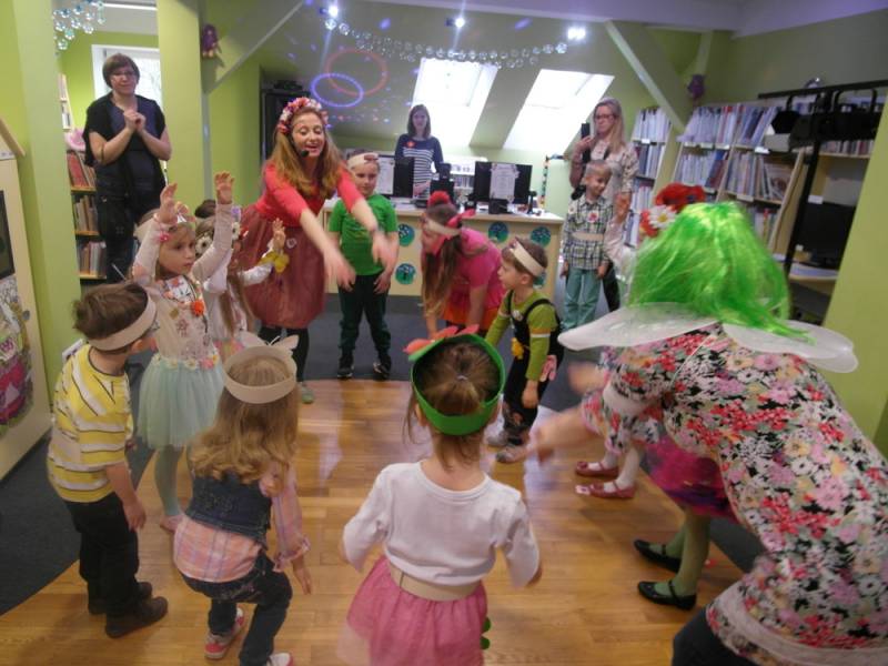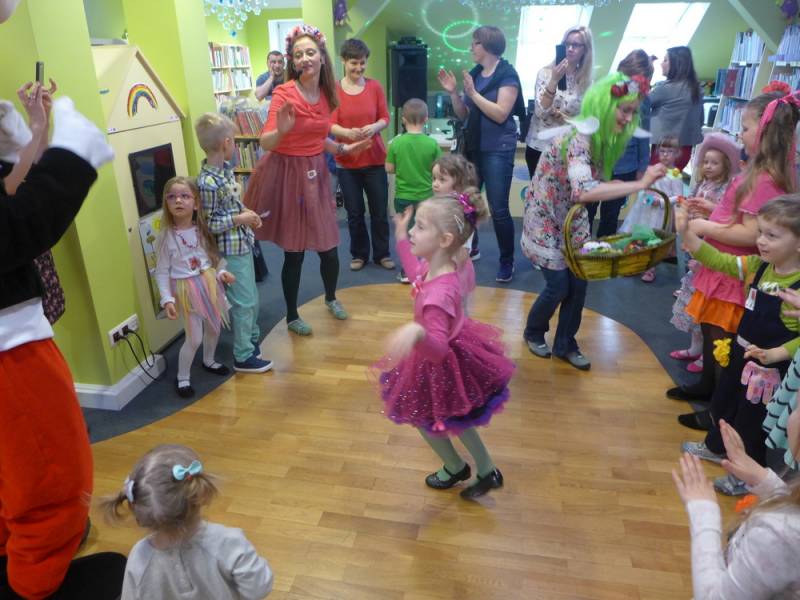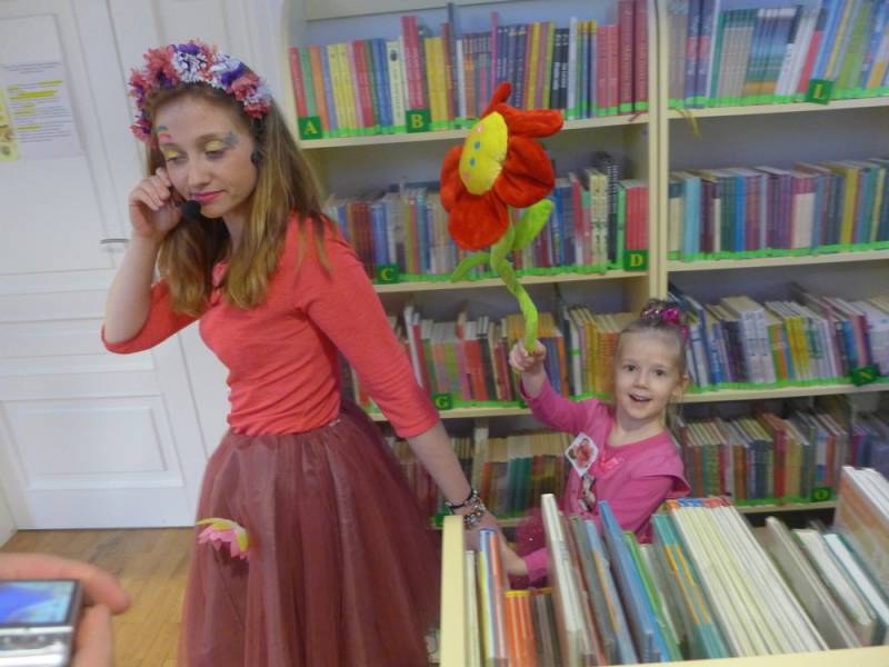 Jedną z kwietniowych atrakcji w Bibliotece Barwnej był Bal Kwiatów dla najmłodszych czytelników. W sobotnie południe zgromadził liczne grono dzieci i rodziców. Dzięki opowiadaniu „Barwy kwiatów” z książki „Wróżki” uczestnicy przenieśli się w świat kwiatów, wróżek i owadów. Pomysłowe przebrania, radosne tańce i zabawy sprawiły, że pochmurny dzień jak za dotknięciem czarodziejskiej różdżki stał się słoneczny i kolorowy.