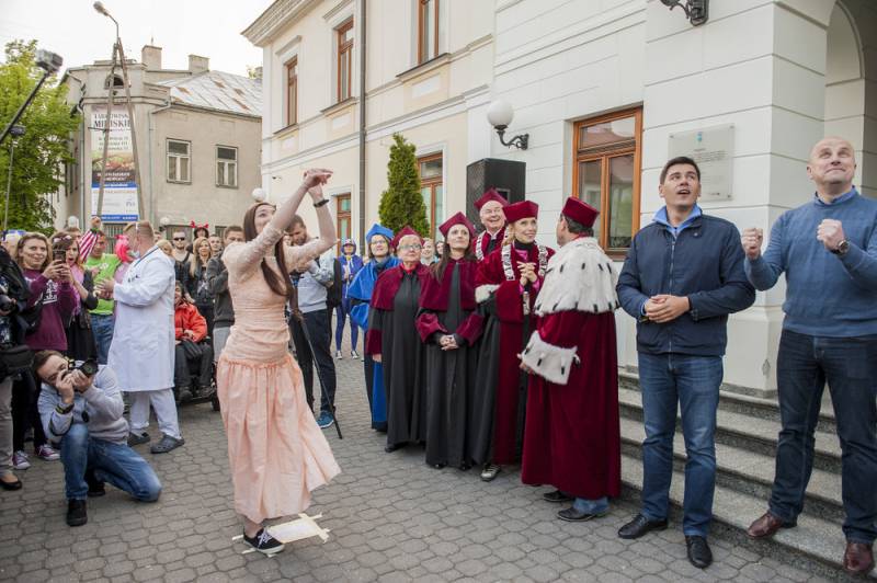 Zanim jednak studenci dotarli do Parku Radziwiłłowskiego musieli wywalczyć klucze do miasta od prezydenta Dariusza Stefaniuka. Bialski włodarz tanio skóry nie sprzedał i w towarzystwie swojego zastępcy Adama Chodzińskiego dzielnie stawił czoła przedstawicielom studenckich samorządów w konkurencji rzutów osobistych. Ostatecznie jednak kooperacja Kingi Prażewskiej (AWF) i Adama Artymiuka (PSW), przyniosła żakom upragnione zwycięstwo.