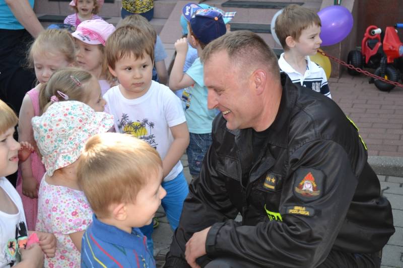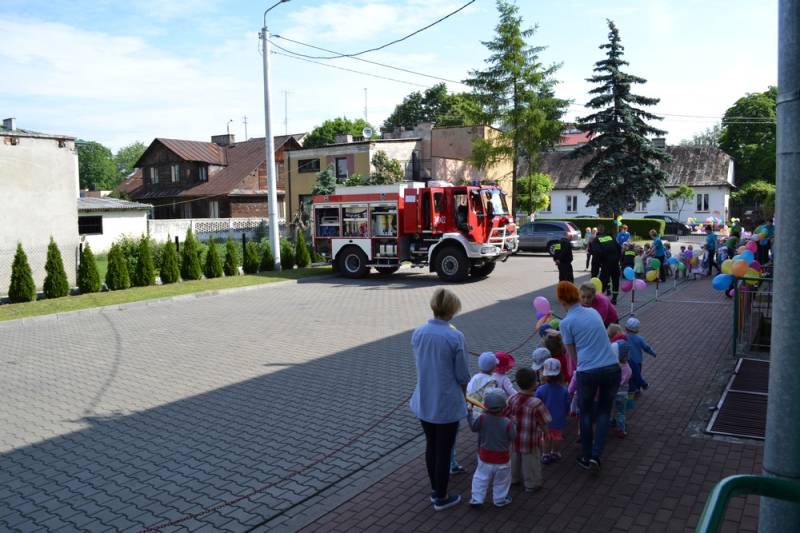 Pierwszy dzień czerwca to wielkie święto w żłobku. Od rana panowała radosna atmosfera, plac wokół żłobka przybrany bajecznie i kolorowo zachęcał milusińskich do zabawy. Tego dnia maluszków odwiedzili specjalni goście – strażacy i policjanci. Dzieci miały możliwość zapoznać się ze sprzętem i umundurowaniem służb, a największą atrakcją była możliwość zobaczenia wyposażenia i sygnalizacji służbowych pojazdów.
