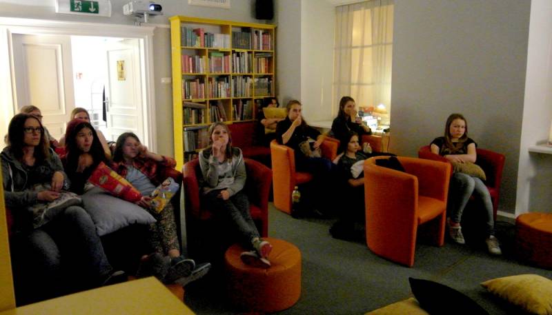 Drugą część nocy i poranek przeznaczono na maraton filmowy. Młodzi mieli do wyboru dwa miejsca, w których mogli oglądać różne, przez siebie wybrane, filmy. Formuła spotkania była luźna, więc niektórzy wybrali trzecią opcję i do białego rana „czatowali” na łóżku w multimediach. Dla części uczestników wytrwanie do 6 rano okazało się nie lada wyzwaniem, a drzemka w bibliotece bardzo kusząca; dla innych zaś noc była zbyt krótka i chętni przedłużyliby ją jeszcze trochę.