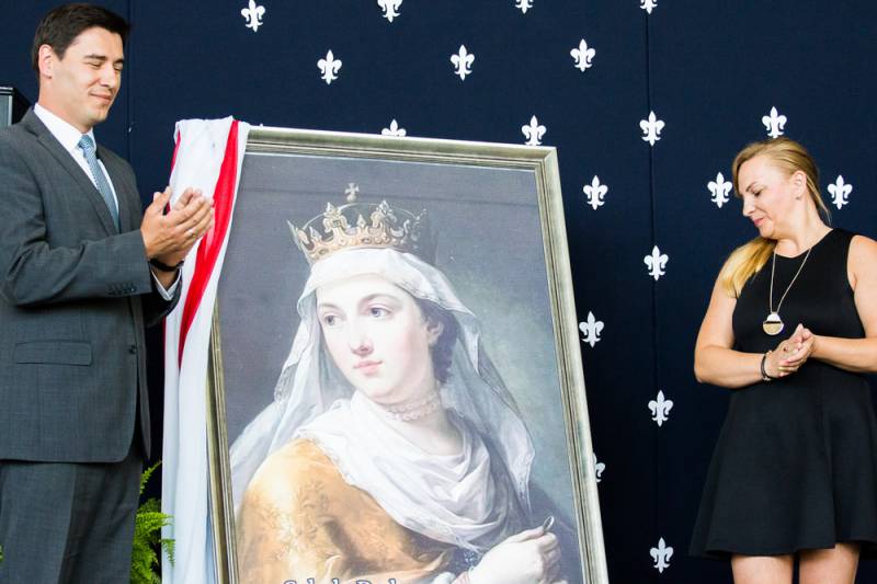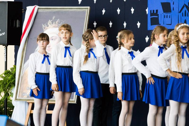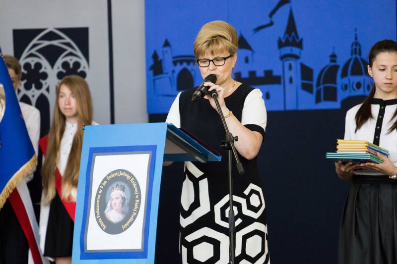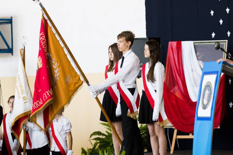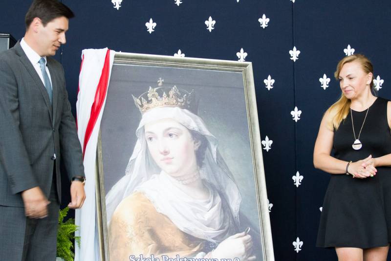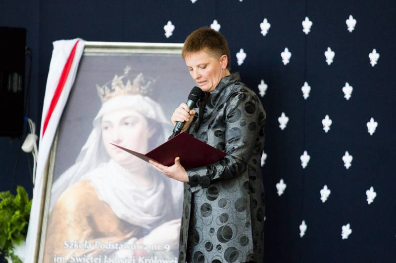 - Z niektórych stron padło pytanie po co? Po pierwsze dla prawdy historycznej, bo Jadwiga została wyniesiona na ołtarze dzięki staraniom kardynała Adama Sapiechy, a potem Karola Wojtyły. Osobiście ogłosił ją Świętą papież Jan Paweł II w 1997 roku na krakowskich Błoniach. Po drugie, jest to świetna okazja do mówienia o wartościach, o prawdach budujących człowieczeństwo – argumentowała decyzję o zmianie sztandaru i uzupełnieniu nazwy szkoły dyrektor Katarzyna Sierpotowska.