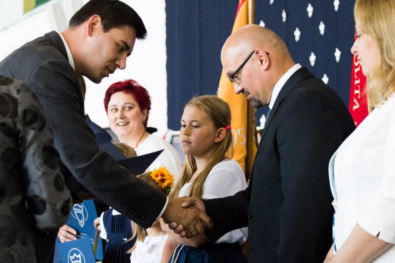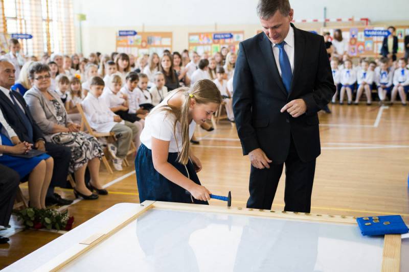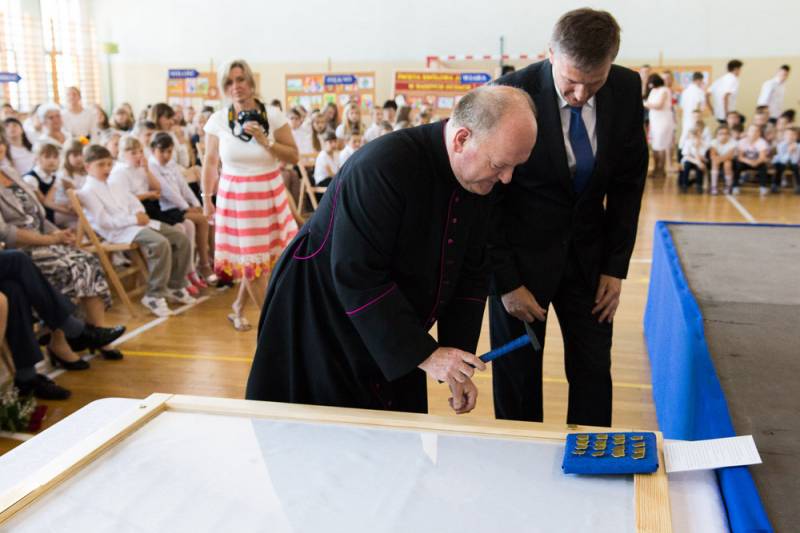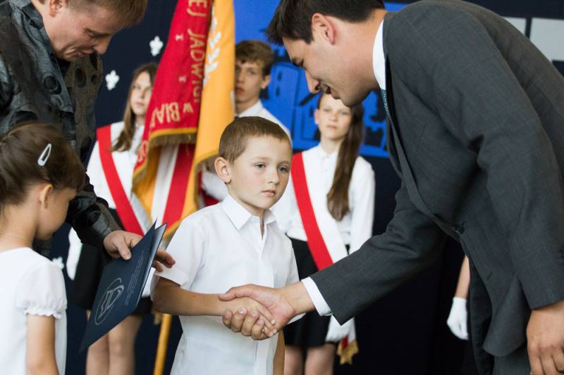 Prezydent Dariusz Stefaniuk przywołał przy tej okazji treść uchwały w sprawie nadania imienia Szkole Podstawowej nr 9, uczestniczył również w symbolicznym przybiciu ozdobnych gwoździ w pamiątkową gablotę sztandaru. Bialski włodarz wziął także udział w odsłonięciu wizerunku św. Królowej Jadwigi, który będzie nową ozdobą szkoły.