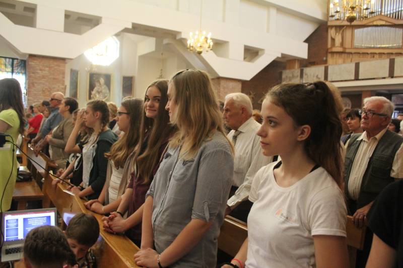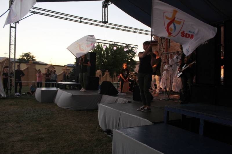Na zakończenie usłyszeliśmy hymn Błogosławieni miłosierni, głos zabrał także proboszcz Jacek Owsianka, który dziękował za obecność i błogosławił wszystkim zgromadzonym. Na scenie pojawił się także gość specjalny – Joanna Janus, – koordynator Diecezjalnego Centrum ŚDM.