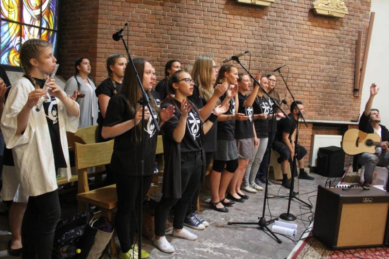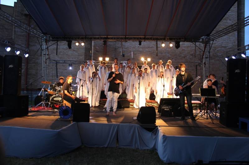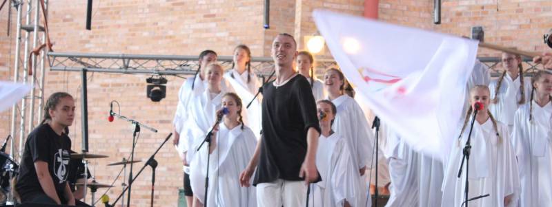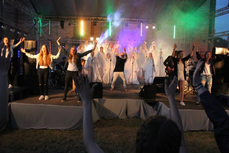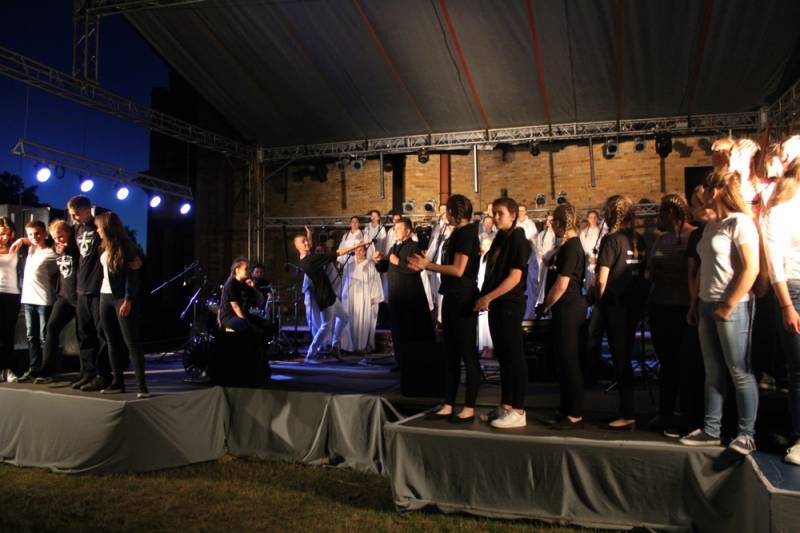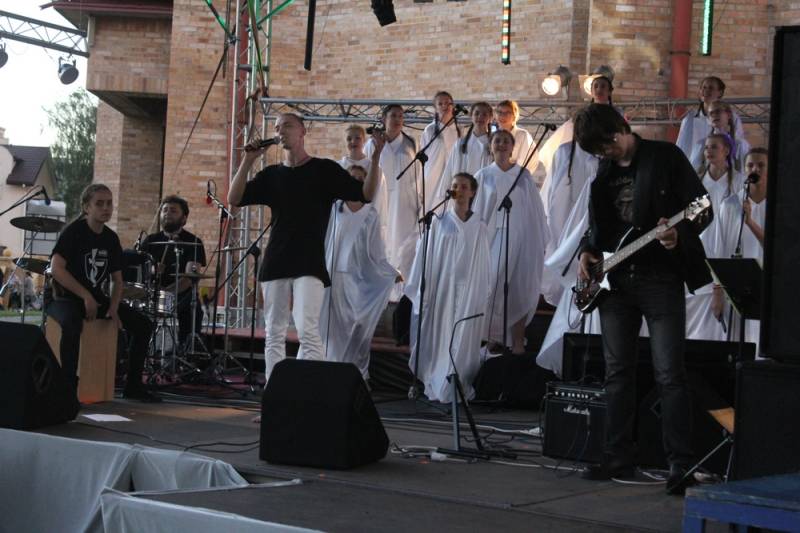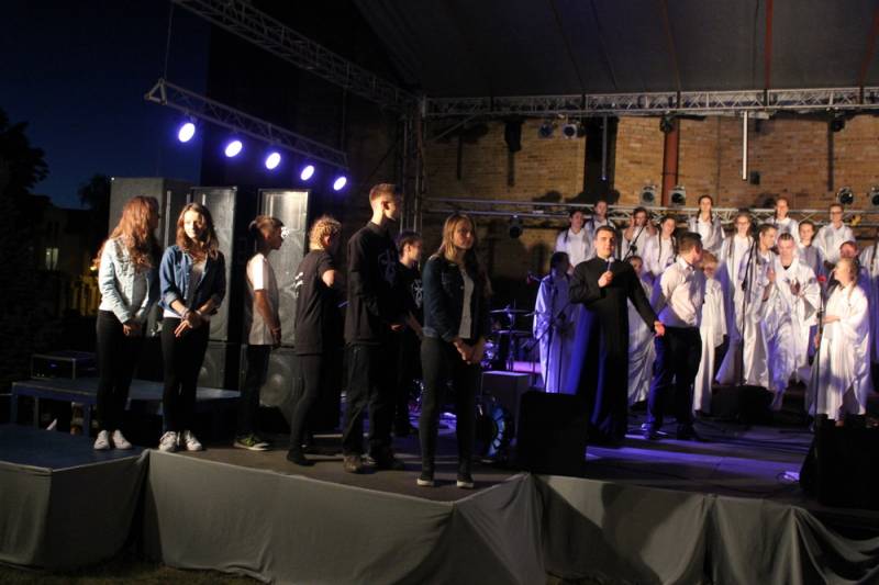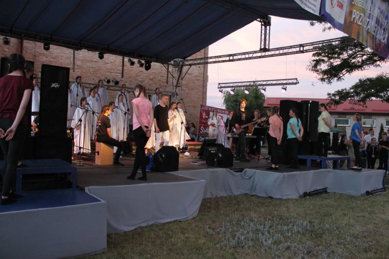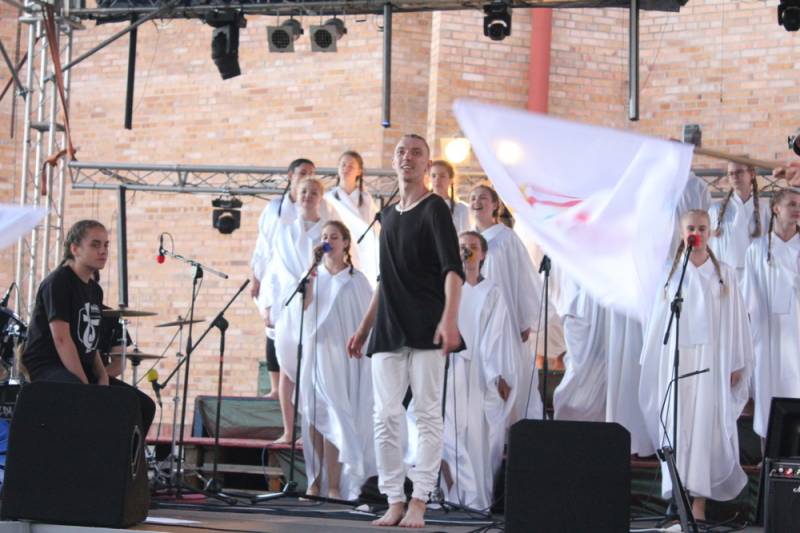 Atrakcje czekały na uczestników wydarzenia nie tylko w murach parafii. Przebojowo było również na scenie przed kościołem, gdzie odbył się koncert uwielbienia w wykonaniu grupy gospelowej Power of Heaven, złożonej z wolontariuszy całego rejonu. Na scenie zaprezentowało się 25 solistów w długich, satynowych szatach oraz instrumentaliści.