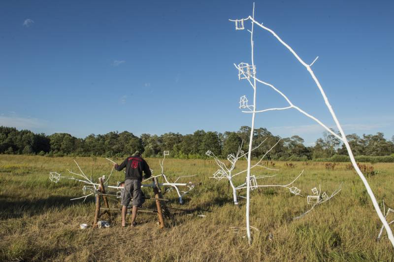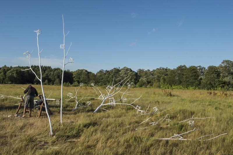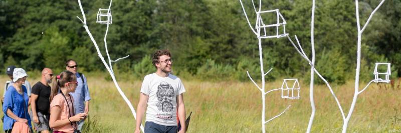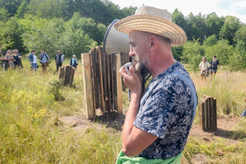 Festiwal Landart organizuje od 6 lat fundacja Latająca Ryba z Lublina. Jej prezesem i zarazem jednym z artystów wydarzenia jest Jarosław Koziara – performer, zajmujący się wieloma dziedzinami sztuki, a od kilku lat właśnie landartem. Jest twórcą kilkudziesięciu monumentalnych, kilkuhektarowych dzieł. Co prawda jego ostatnie realizacje – ta z ubiegłego roku i aktualna, wtapiają się w naturalny nadbużański pejzaż niemal niezauważalne, ale to właśnie jego efektowne „polne tatuaże” na poprzednich edycjach festiwalu można było podziwiać z dużych wysokości.