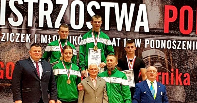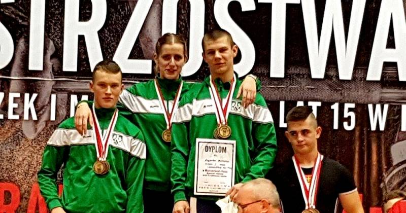 15 letni zawodnicy Bartosz i Jan rywalizowali w kategorii wagowej do 77 kg. Po przepięknej walce z kolegą z klubu LKS Burza Burzenin nasi zawodniczy zajęli najwyższe miejsca na podium. Mistrzem Polski z wynikiem 215 kg został Bartosz Szyszko natomiast jego klubowy kolega Jan Szudejko został wicemistrzem kraju z wynikiem 212 kg w dwuboju.