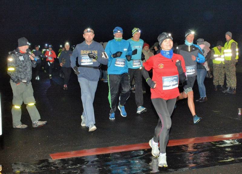 Biegacze i walkerzy mieli do pokonania 2,5-kilometrową pętlę. W pakiecie startowym każdy otrzymał latarkę-czołówkę, która ułatwiła poruszanie się po lotnisku w niemal kompletnej ciemności. Na macie nagrodzono najlepszych zawodników, wszyscy dostali pamiątkowe medale, a ponadto przygotowano wyjątkową integrację przy ognisku.