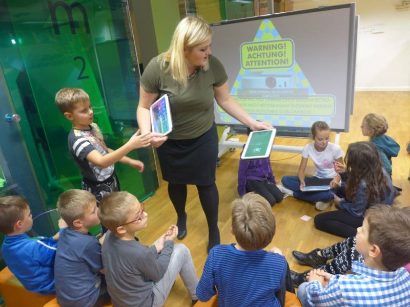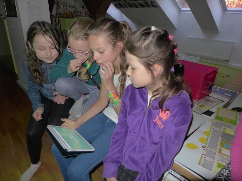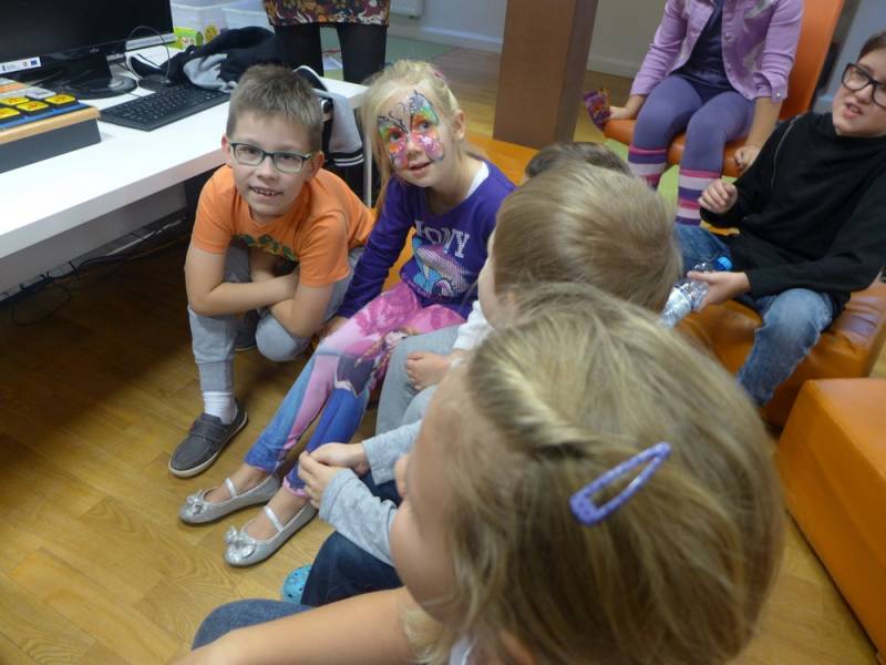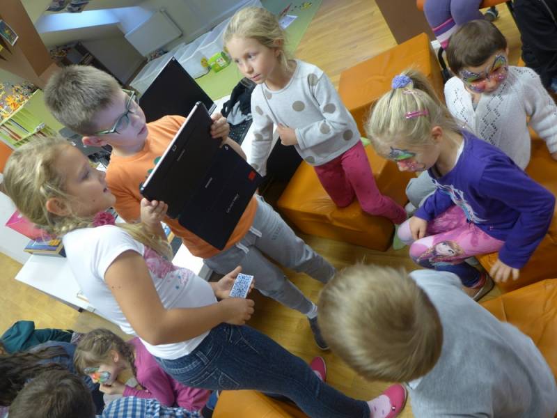 Multicentrum, jako placówka interaktywna, zapoznała dzieci z najnowszymi technologiami oraz użyciem kodów QR, gdzie były zaszyfrowane tzw. Tongue Twister, czyli łamańce językowe. Na koniec imprezy odbyło się malowanie buziek, które wspólnie nazwaliśmy Festival of Colours, czyli radosne kolorowe święto języka angielskiego.