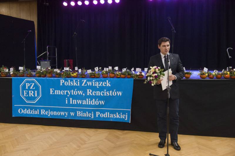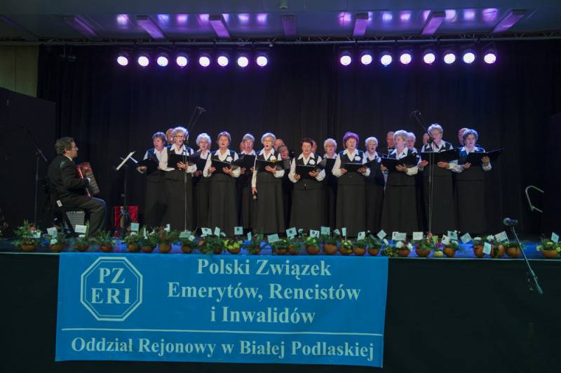 Bialski włodarz złożył specjalne podziękowania i przekazał wiązankę na ręce przewodniczącej bialskiego oddziału ZERiI Marii Skoniecznej. Na uczestników czekały nie tylko miłe słowa ale również wyborny poczęstunek i występy seniorskich grup artystycznych, działających w Białej Podlaskiej. Na scenie pojawił się m.in. chór Społem PSS, z akompaniamentem Andrzeja Charytoniuka. Tradycja działalności zespołu sięga lat 50. ubiegłego stulecia.