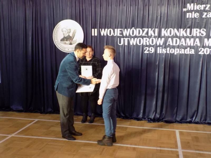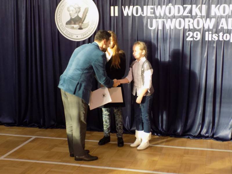 Następnie ogłoszono wyniki konkursowych zmagań. Wszyscy recytatorzy otrzymali dyplomy uczestnictwa w konkursie. Pan Maciej Kosik – dyrektor ZSO nr2 podziękował za pracę komisji konkursowej i nauczycielom za trud przygotowania uczniów do konkursu. Najlepszym recytatorom dyplomy i atrakcyjne nagrody rzeczowe wręczył p. Michał Litwiniuk – I Zastępca Prezydenta Miasta Biała Podlaska.
