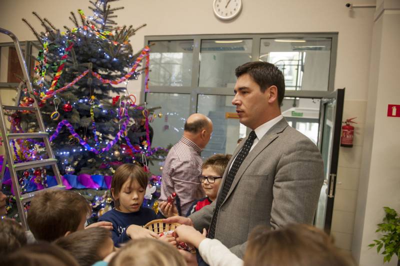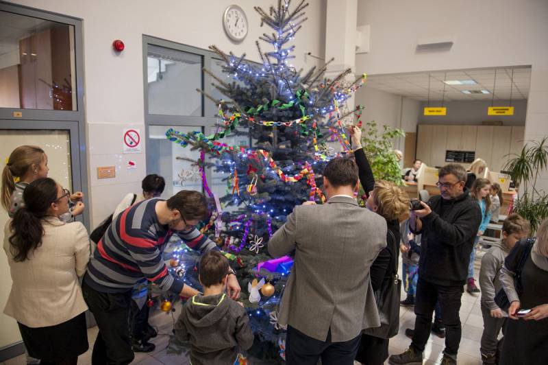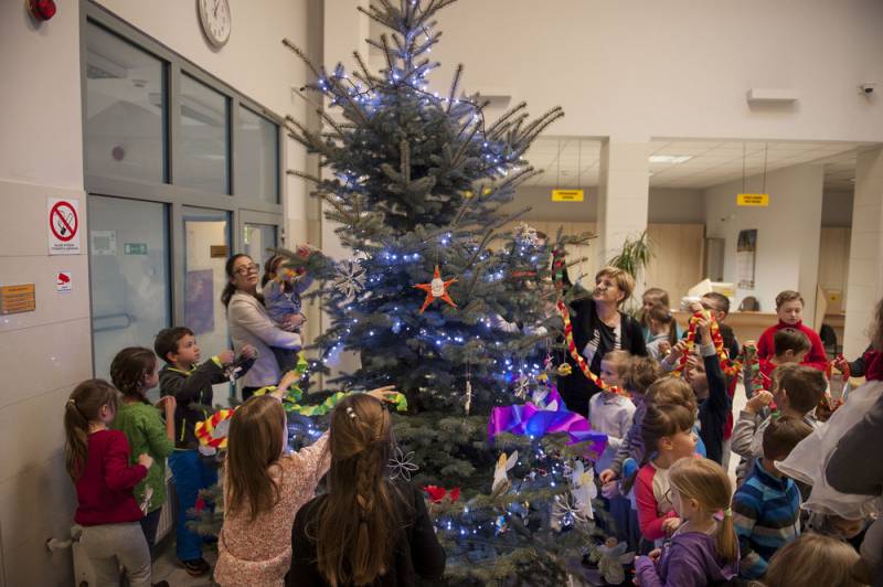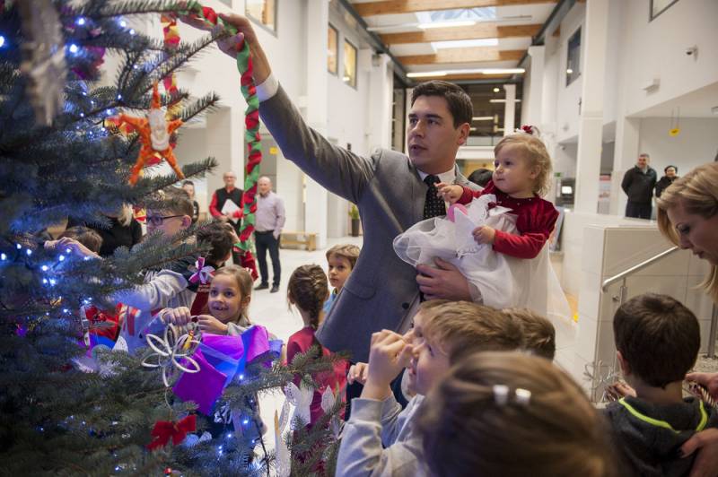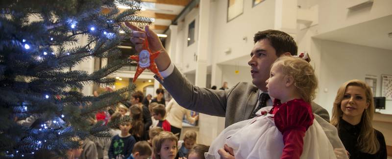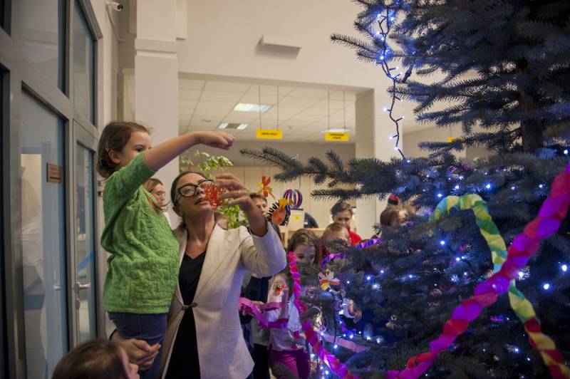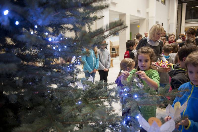 Nastrojowo i świątecznie będzie nie tylko na Placu Wolności, bo od kilku dni w bialskim magistracie stoi piękna choinka. Barwne ozdoby wykonały dzieci z jednej ze Szkół Podstawowych, które wraz z Dariuszem Stefaniukiem i jego rodziną, pomagały w przystrajaniu drzewka. Bialski włodarz odwdzięczył się podarowaniem świątecznych pocztówek z miejskimi pejzażami.