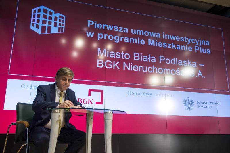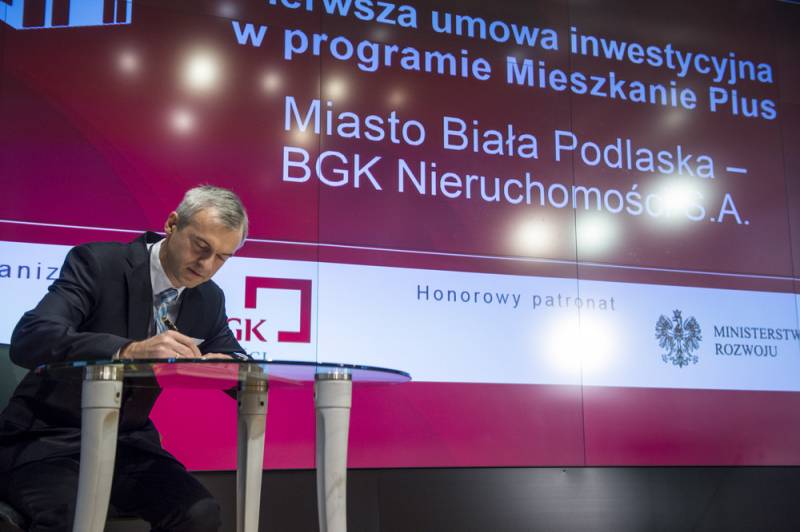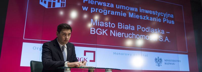 Z udziałem premiera Mateusza Morawieckiego odbyło się na warszawskiej Giełdzie Papierów Wartościowych uroczyste podpisanie pierwszej umowy inwestycyjnej w ramach rządowego programu Mieszkanie Plus. Podpis pod dokumentem złożyła m.in. Bernadeta Puczka, prezes bialskiego ZGL oraz Dariusz Stefaniuk, prezydent Białej Podlaskiej, która jako pierwsze miasto w Polsce wybuduje mieszkania czynszowe na preferencyjnych warunkach.