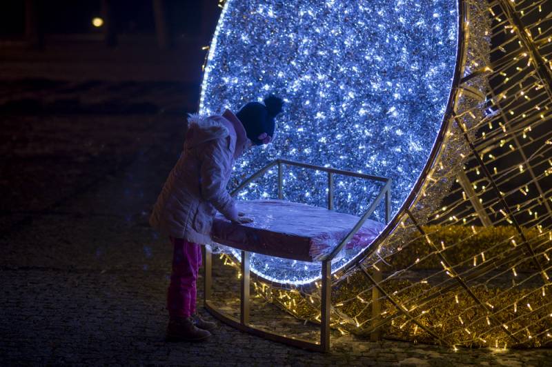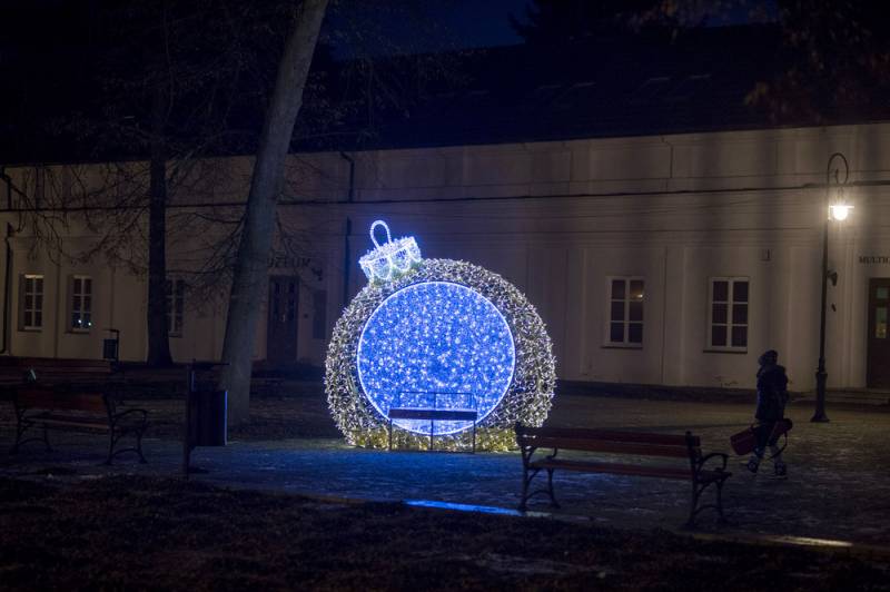 Kolejnym przystaniem na szlaku świątecznych spacerów powinien być bez wątpienia Park Radziwiłłowski, gdzie znajdziemy imponującą, świetlną dekorację, która spodoba się nie tylko najmłodszym. Trzymetrowa srebrno-złota bombka, migocze ponad 3 tys. białych diod. W środku znajduje się eleganckie, wyściełane czerwonym materiałem siedzisko, z którego każda fotka będzie wyglądała imponująco.