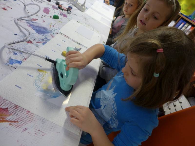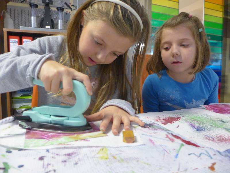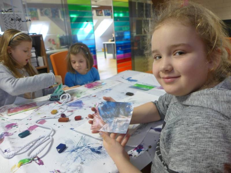 W czasie ferii w Multicentrum odbyły się także warsztaty enkaustyczne, na których dzieci miały okazję poznać intrygującą technikę malarską. Dowiedziano się, że w plastyce prócz znanych tradycyjnych technik takich jak akwarela, gwasz czy olej, istnieją inne, nieco zapomniane a dziś chętnie na nowo odkrywane.
