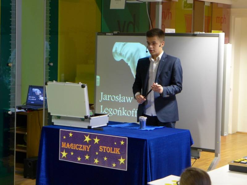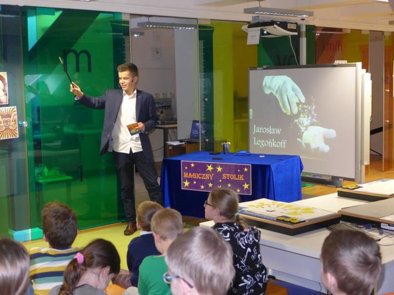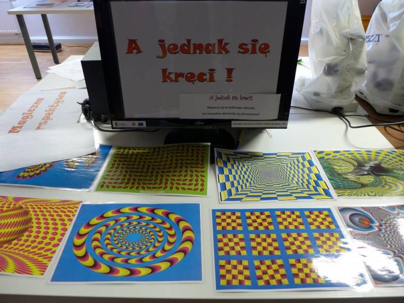 Świat iluzji – pod takim hasłem odbyły się warsztaty, których celem było wyjaśnienie, czy zawsze nasze postrzeganie świata jest prawdziwe, czy jesteśmy oszukiwani przez nasz mózg. Zajęciom towarzyszyła prelekcja Sylwii Trzeciak na temat złudzeń optycznych oraz pokaz eksperymentów w wykonaniu Agnieszki Wdowczyk.