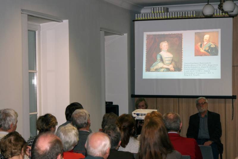 Dr Jerzy Flisiński podzielił ten blisko trzygodzinny wykład na dwie części. Każdą poświęcił sylwetce jednej z księżnych Radziwiłłowych. W czasie przerwy można było oglądać wystawę „W kręgu bialskich Radziwiłłów”. W gablotach zgromadzono książki i artykuły ze zbiorów Działu Regionalnego.