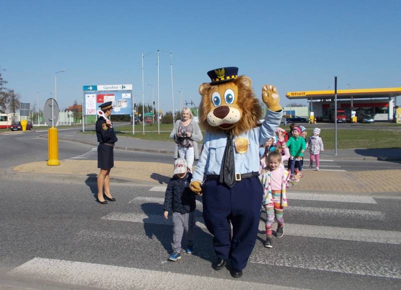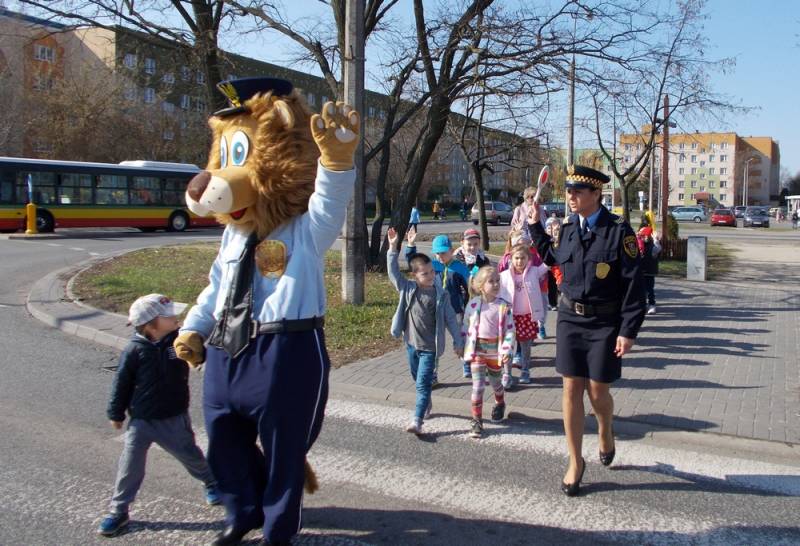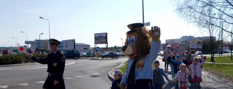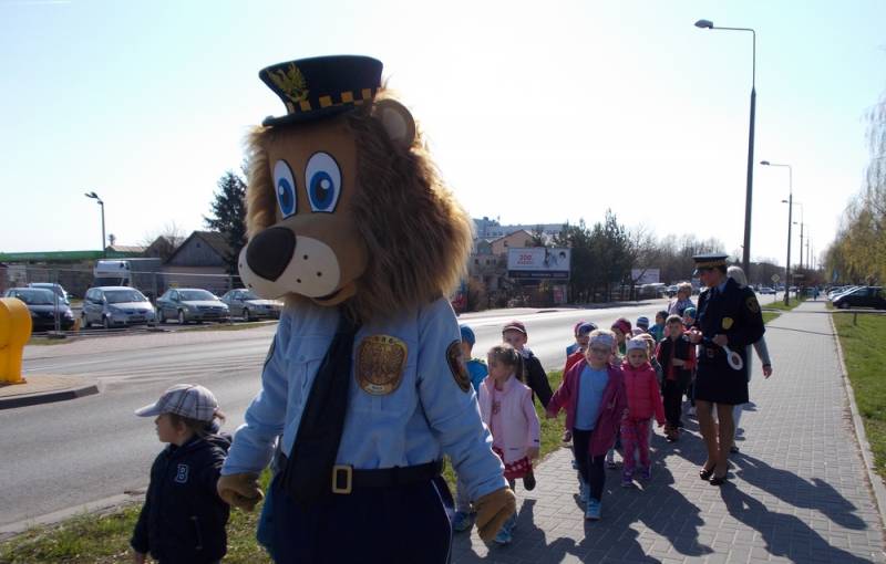 Ciekawym elementem spotkania było zapoznanie przedszkolaków z zasadami ruchu drogowego. W czasie krótkiej wycieczki strażniczka wraz z Lwem Julianem objaśniła i pokazała dzieciom zasady bezpiecznego zachowania na drodze oraz przechodzenia przez jezdnię.