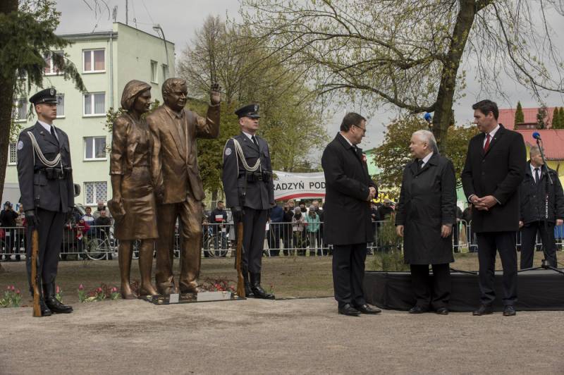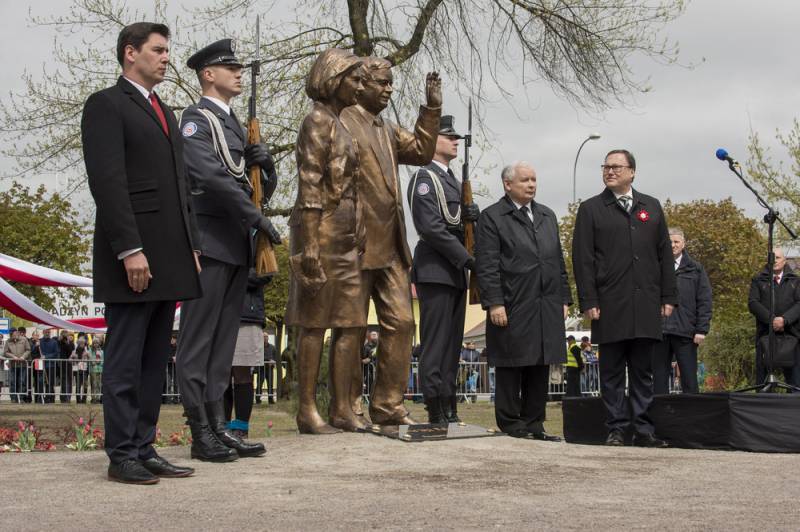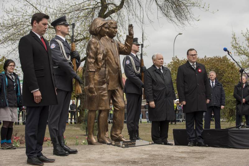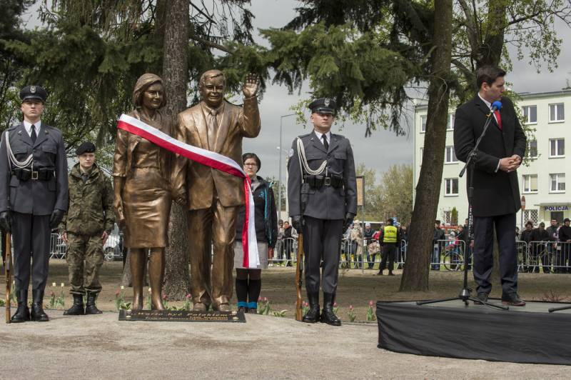 Każde pokolenie buduje pomniki, które ukazują najważniejsze dla nich wartości – mówił podczas oficjalnego odsłonięcia pomnika Lecha i Marii Kaczyńskich senator Grzegorz Bierecki, główny inicjator przedsięwzięcia. W uroczystości wziął udział brat tragicznie zmarłego prezydenta Jarosław Kaczyński.