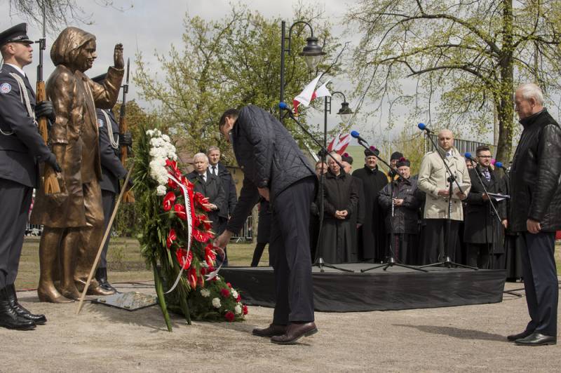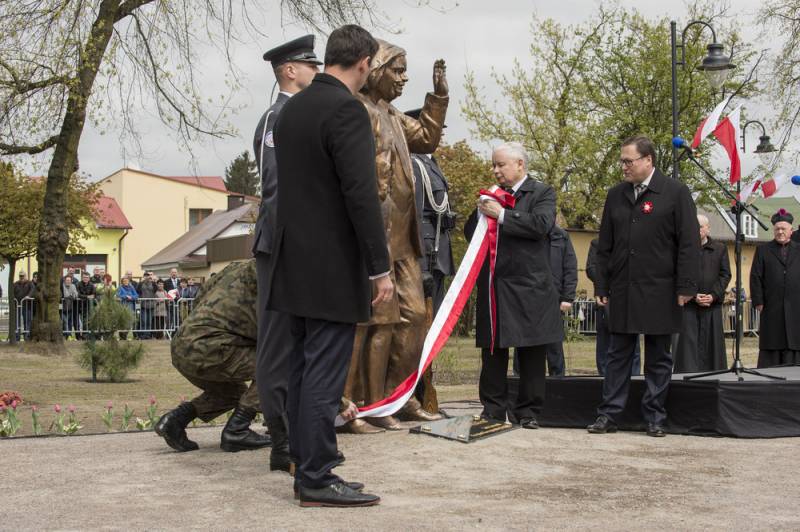Inicjatorom budowy pomnika i fundatorom dziękował Jarosław Kaczyński, który zdjął szarfę w biało-czerwonych barwach. Prezes PiS mówił, że jego wdzięczność ma charakter bardzo osobisty i w długim przemówieniu przypomniał historię kariery politycznej swojego brata i podkreślił, że będzie dążył do tego, aby w Polsce podobnych pomników powstawało coraz więcej.