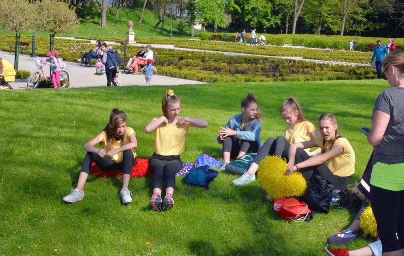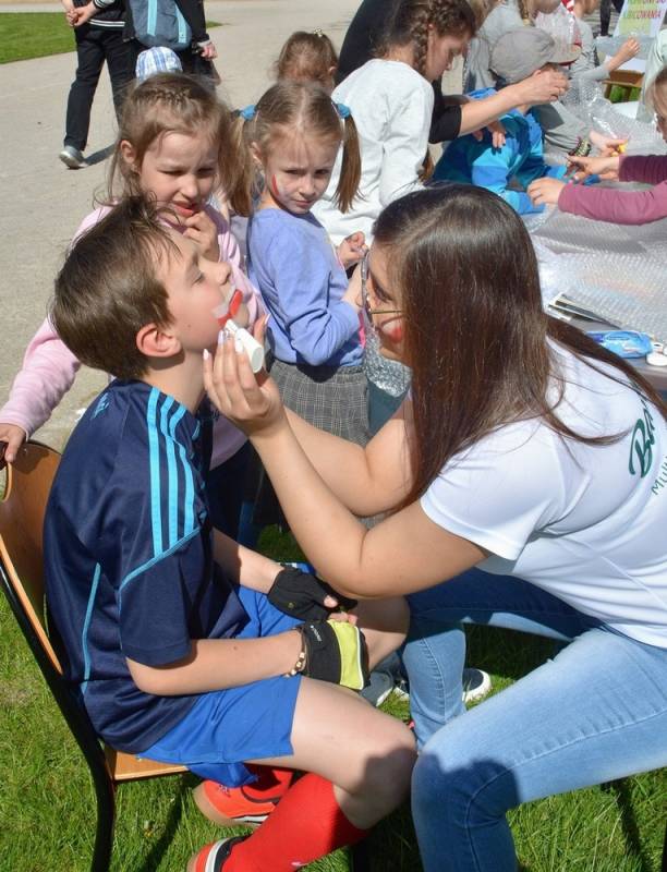 Inni uczestnicy mogli kibicować, a na specjalnych stanowiskach wykonali z różnych materiałów plastycznych machacze - pompony do kibicowania. Do kibicowania zachęcał zespół cherleaderek, działający przy Szkole Podstawowej nr 3 w Białej Podlaskiej.