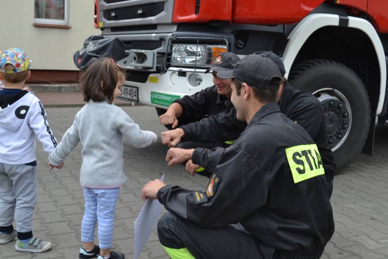 Wielką atrakcją było spotkanie z policjantami i strażakami. Dzieci miały okazję obejrzenia z bliska sprzętu i samochodów, które zaparkowały na parkingu żłobka. Każde dziecko mogło usiąść na chwilę za kierownicą czy przymierzyć hełm strażacki. Ponadto mogły posłuchać sygnałów policyjnych i strażackich syren. W żłobkowy dzień dziecka zaangażowali się również funkcjonariusze Zakładu Karnego.