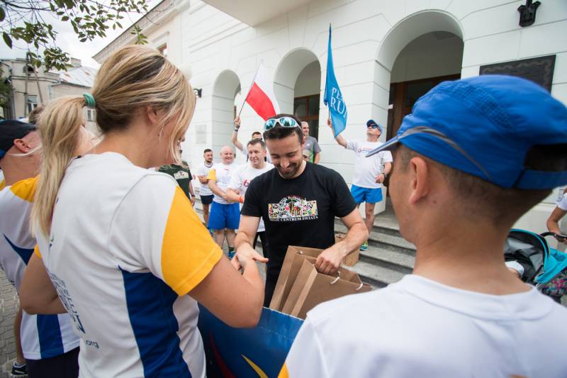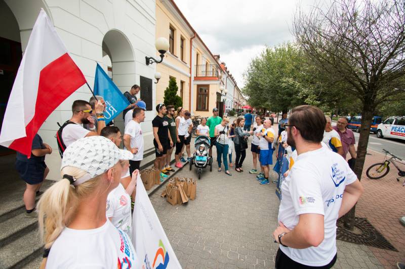 Nie obyło się bez pamiątkowych prezentów dla biegaczy, którzy udali się następnie w kierunku naszych wschodnich sąsiadów. W zamian uczestnicy Peace Run odśpiewali hymn charytatywnej sztafety.
